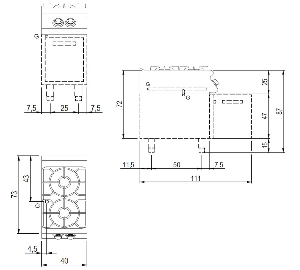 Estas cocinas de 40 cm combinan diseño robusto, potencia y flexibilidad. Con opciones estándar o potenciadas, son la elección perfecta para hostelería que necesita máximo rendimiento en el mínimo espacio.