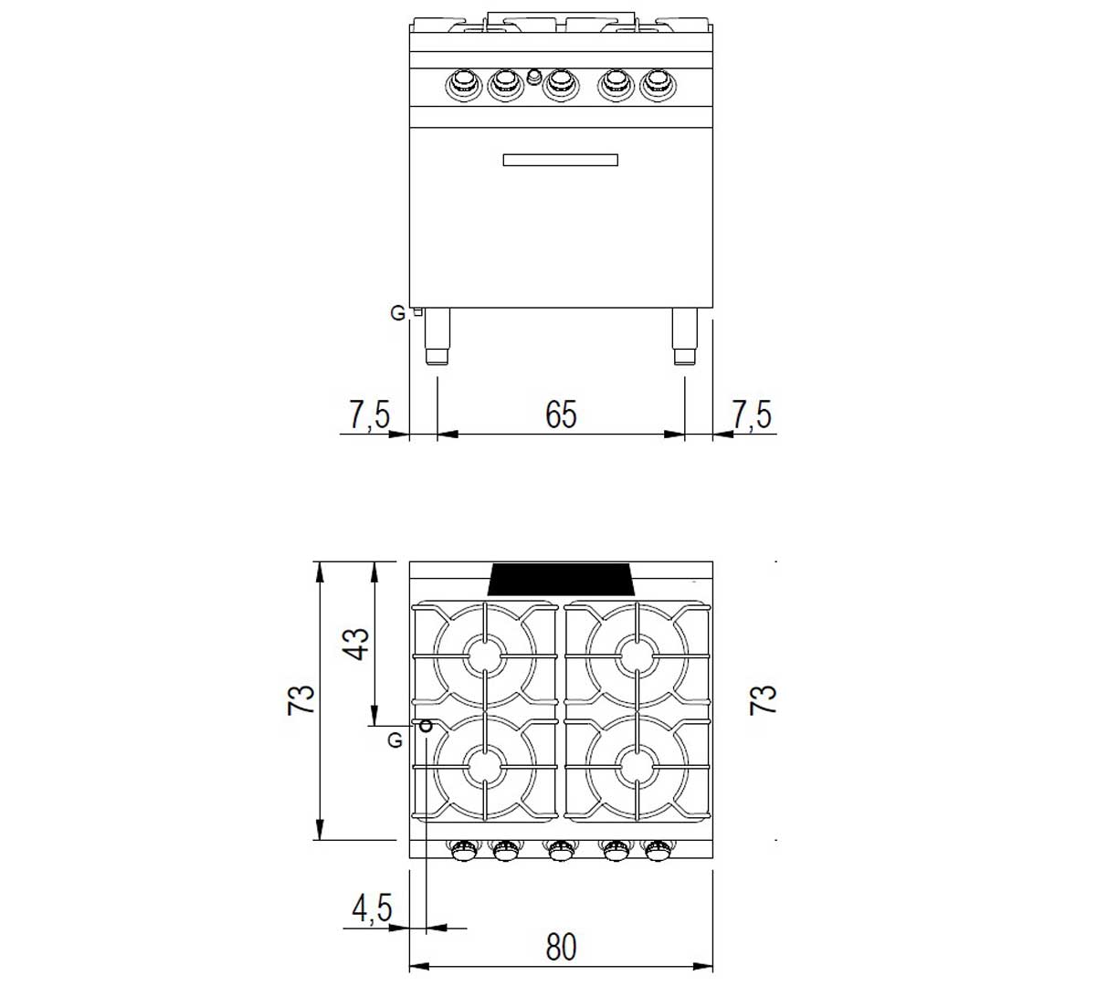 | Savemah S700 Cocina SV 78 CFGBI Horno Gas - Potencia 26,4 kW | ||