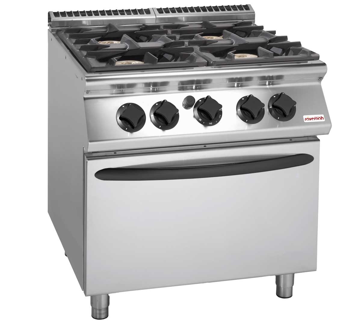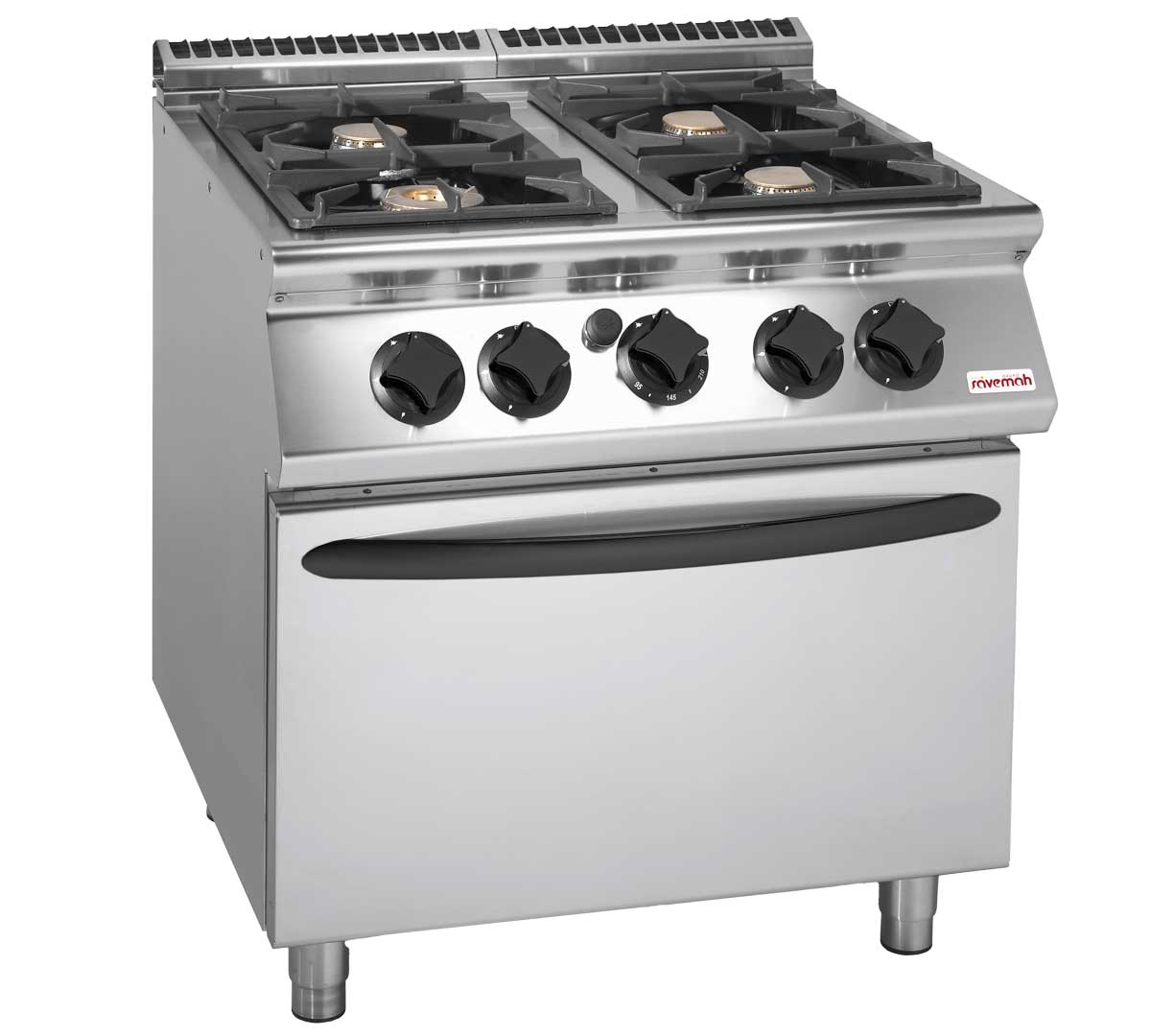 Cocina modular de 4 fuegos y horno. Fabricada en acero inoxidable AISI 304, con quemadores de alto rendimiento y horno de gran capacidad GN 2/1. Encendido seguro y fácil conversión de gas.