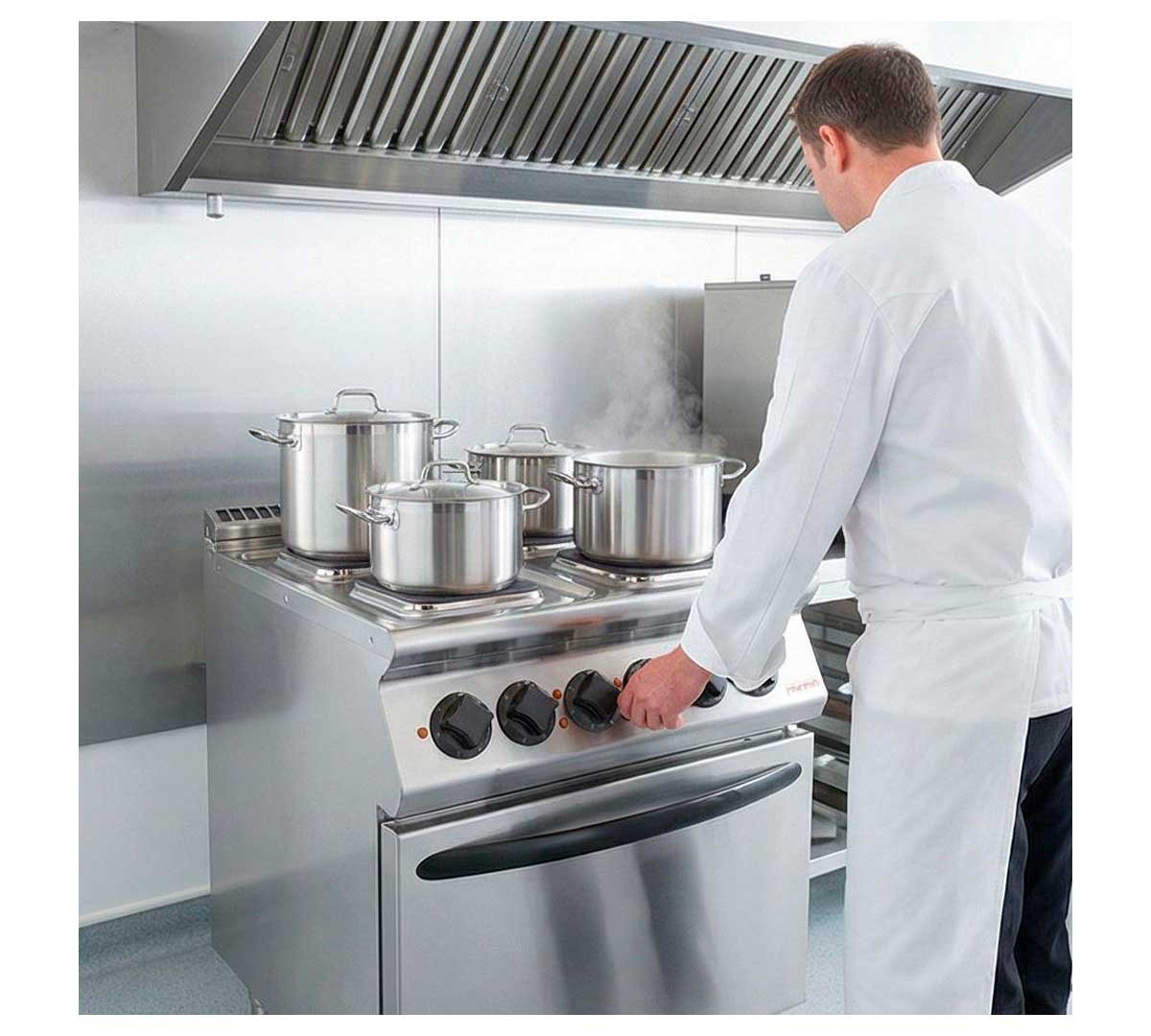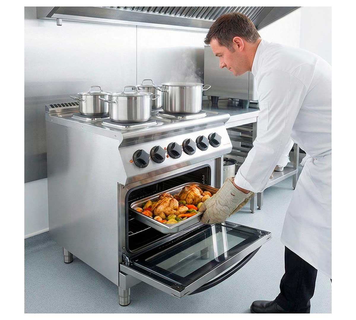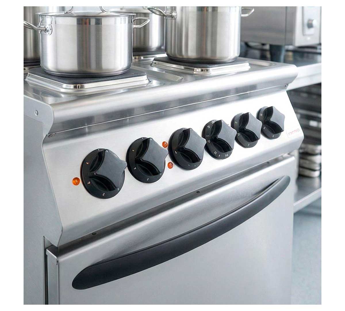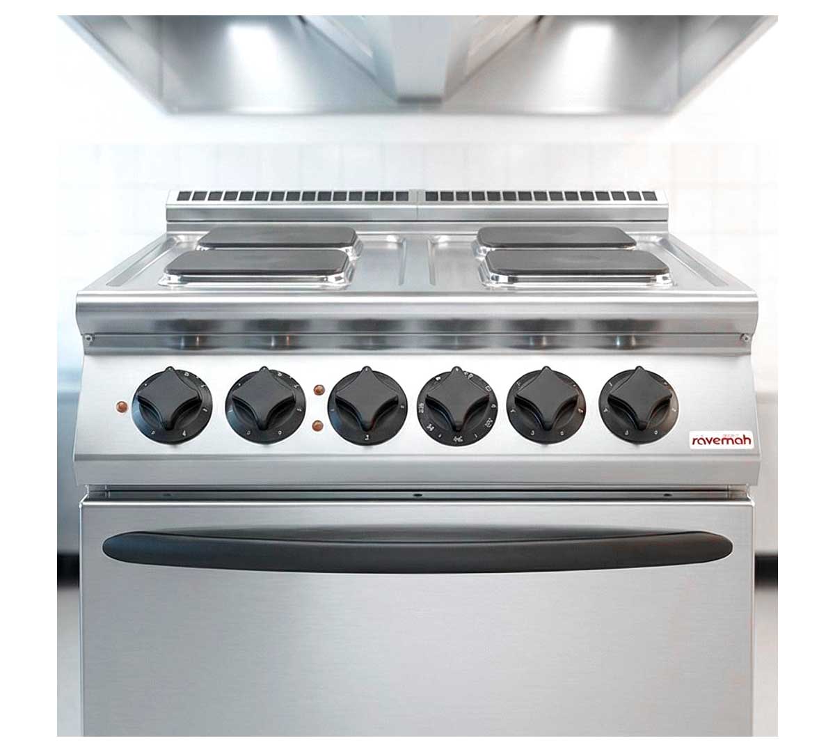Esta cocina eléctrica de placas cuadradas con horno está especialmente indicada para cocinas profesionales que requieren una alta capacidad de producción y una gestión eficiente del espacio. Es ideal para restaurantes, hoteles, comedores colectivos y cualquier entorno donde se precise una cocción intensiva y homogénea, así como la posibilidad de hornear grandes volúmenes de alimentos en un solo equipo.