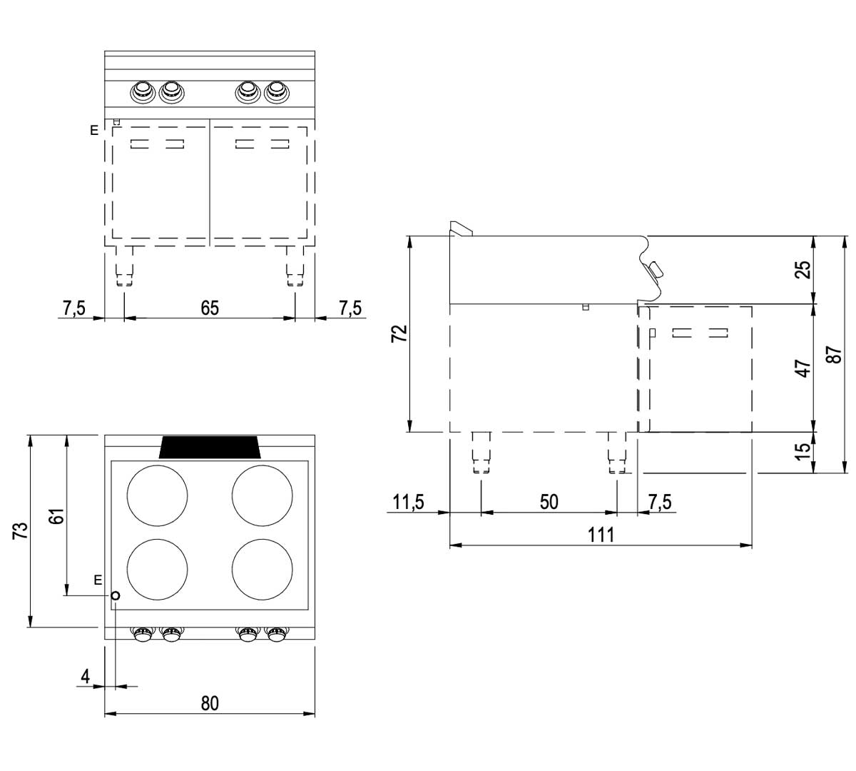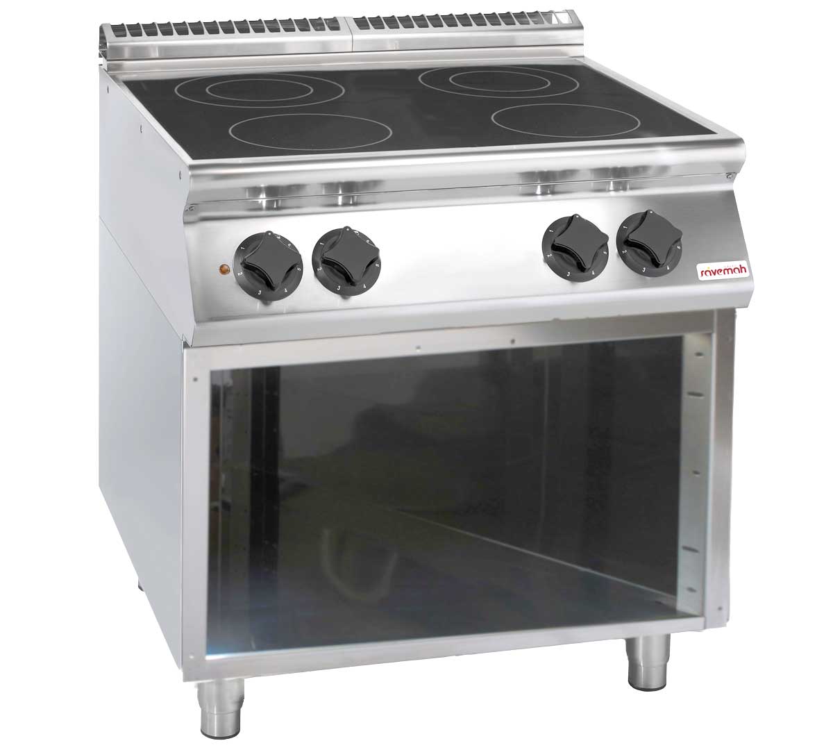 La Cocina Vitro S700 4 Zonas de Cocción con Mueble Abierto SV 78 PVE de Savemah es una solución de cocción eléctrica de alto rendimiento, diseñada para ofrecer máxima robustez, fiabilidad y ergonomía en entornos de cocina profesional.
