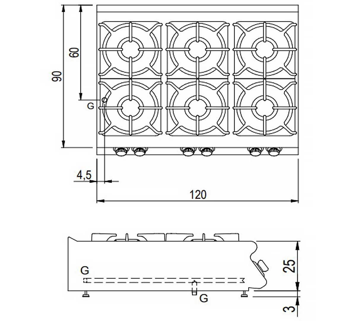 La Cocina S900 6 Fuegos Sobremesa Savemah representa una solución de cocción profesional diseñada para optimizar el rendimiento en cocinas industriales.