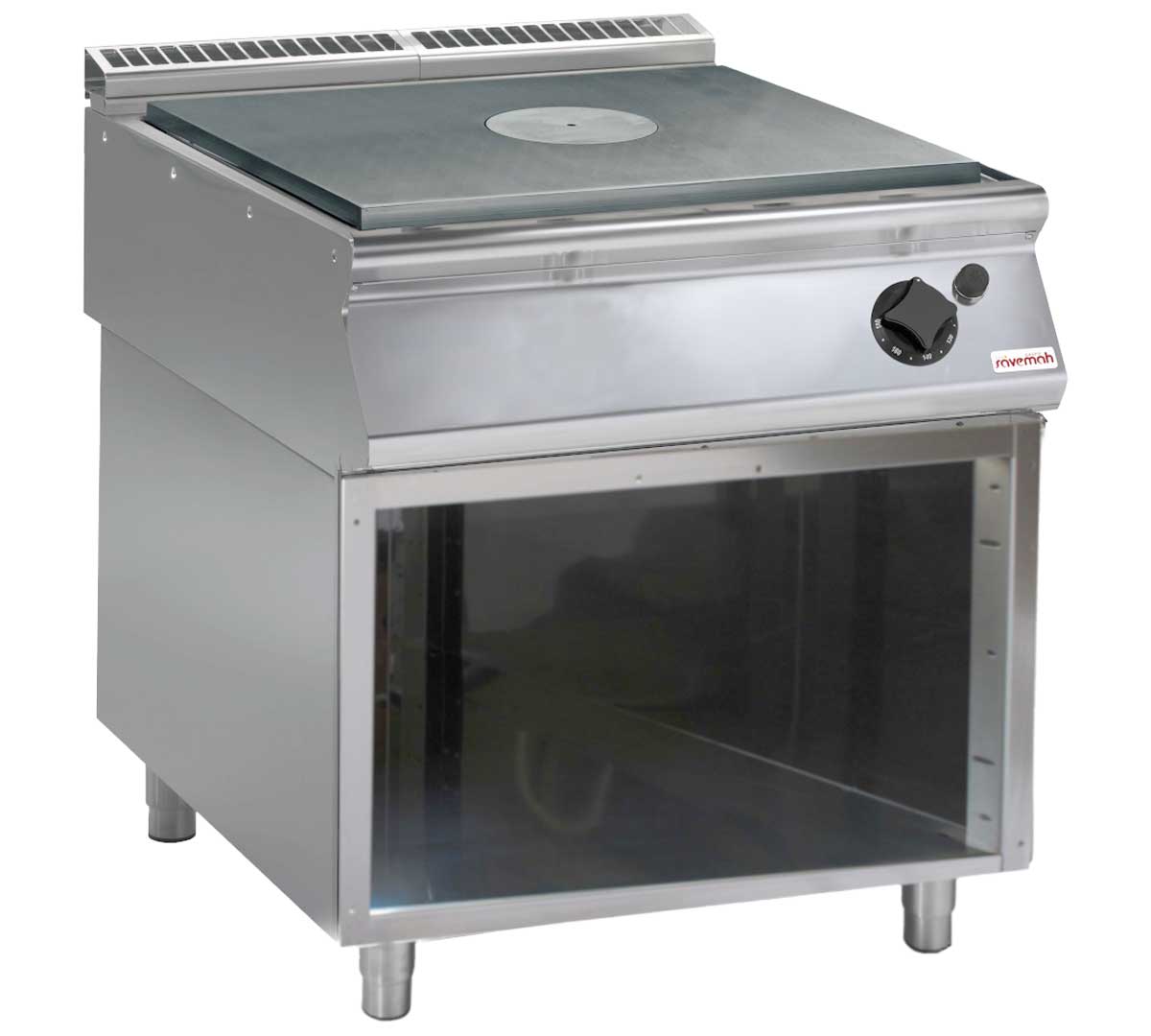 La cocina Savemah SV 98 TPG ofrece una cocción uniforme, constante y de alta potencia. Su placa radiante de hierro fundido con quemador multianillo asegura una excelente inercia térmica, estabilidad y durabilidad, ideal para un uso intensivo en cocinas profesionales.