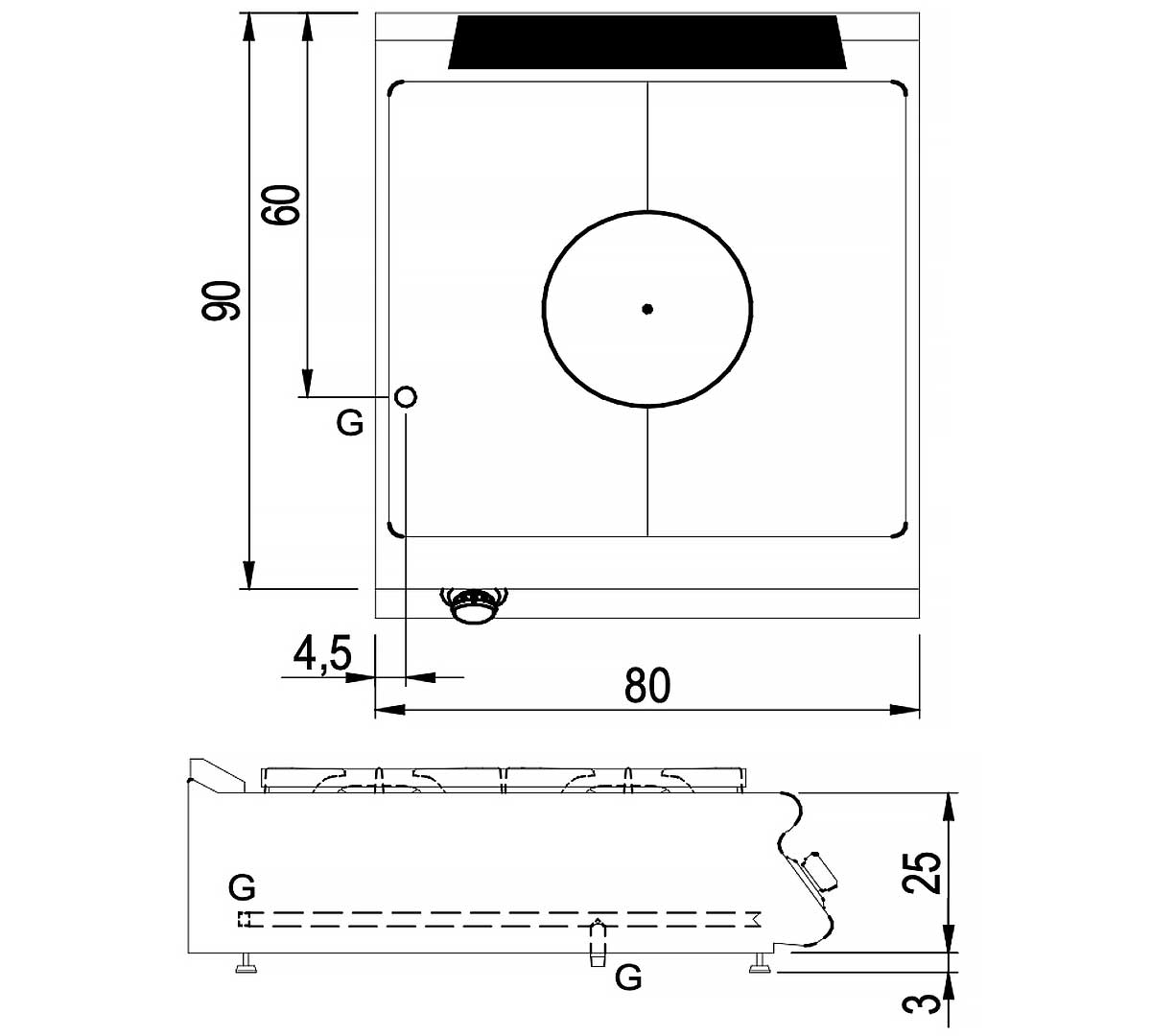 La Cocina SV 98 TPG-T pertenece a la Serie 900 Modular, con encimera de acero inoxidable AISI 304 y una placa radiante de gran espesor en hierro fundido con orificio central.