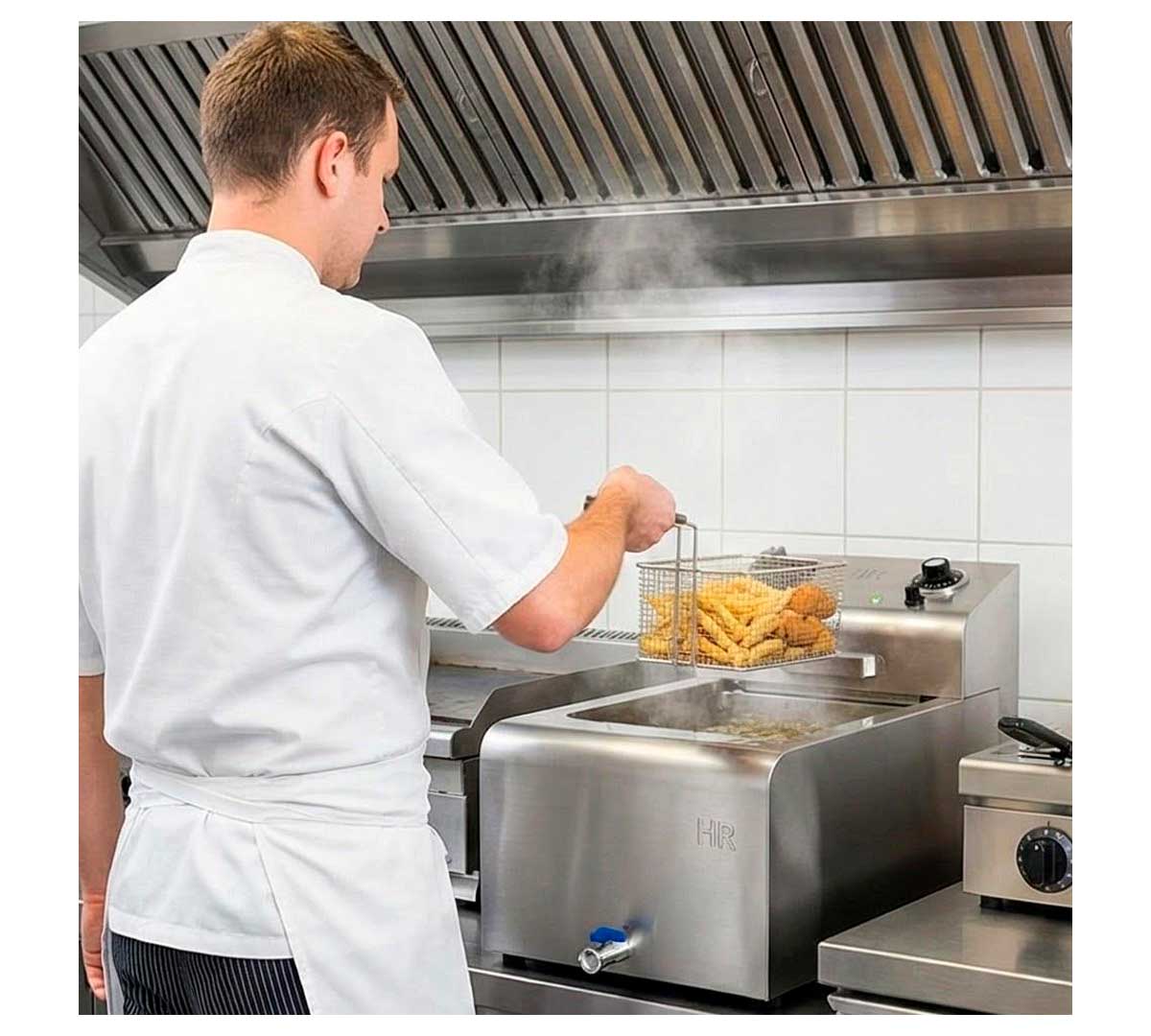 Este equipo de fritura es ideal para preparar grandes volúmenes de alimentos fritos, como patatas, croquetas, empanados y otros productos, asegurando una cocción homogénea y rápida. Es especialmente útil en cocinas donde la agilidad y la limpieza son prioritarias, como en restaurantes, bares y servicios de catering.