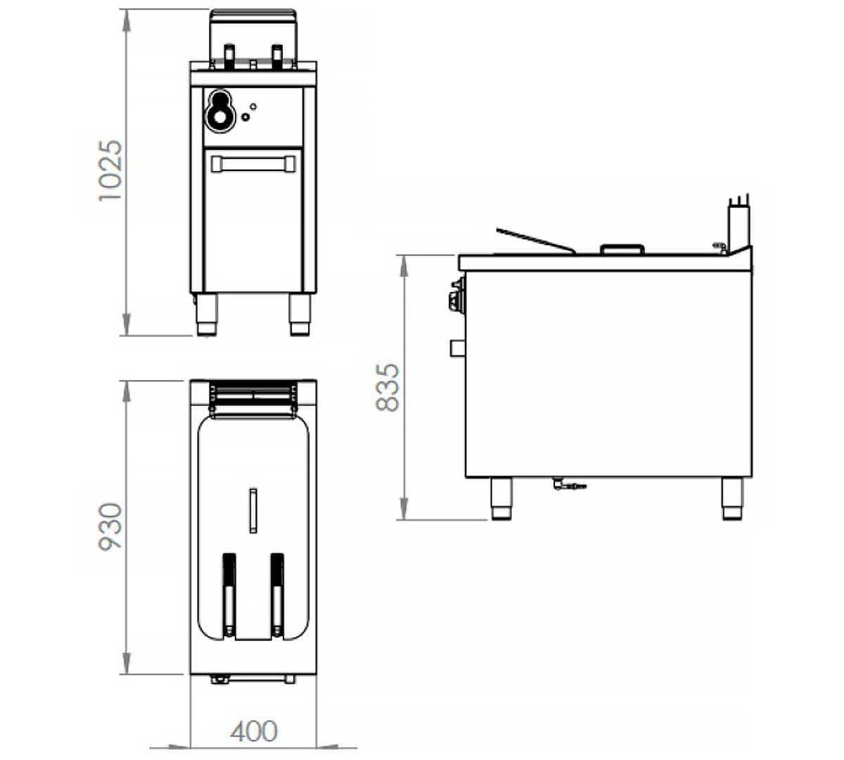 La Freidora de 20 litros pertenece a la Serie 900 modular, con encimera AISI 304 de 2 mm y cuba embutida de gran capacidad diseñada para fritura de alto volumen con recuperación térmica rápida.