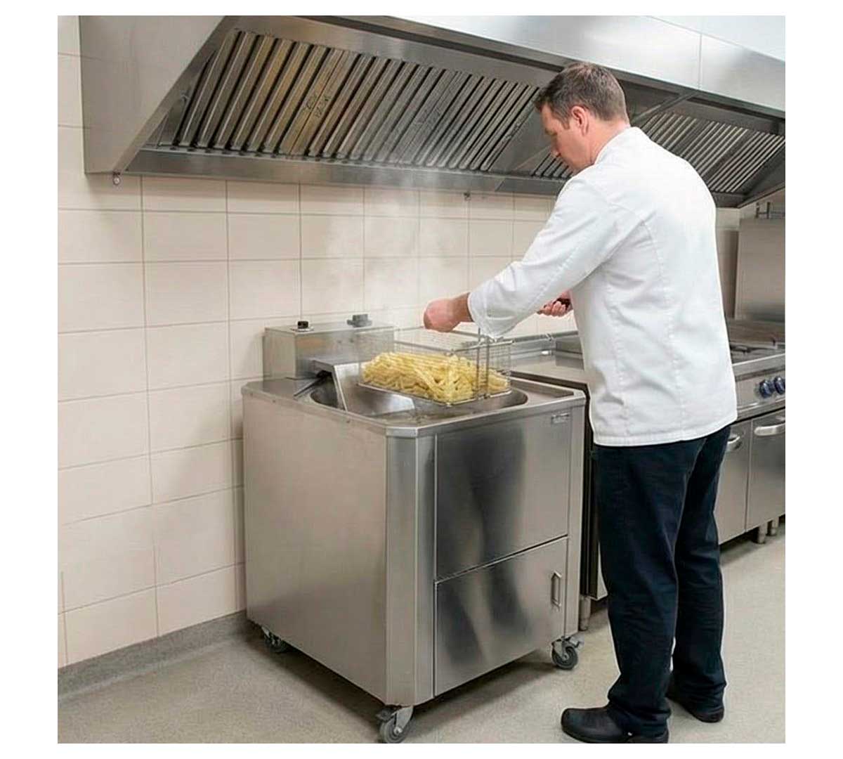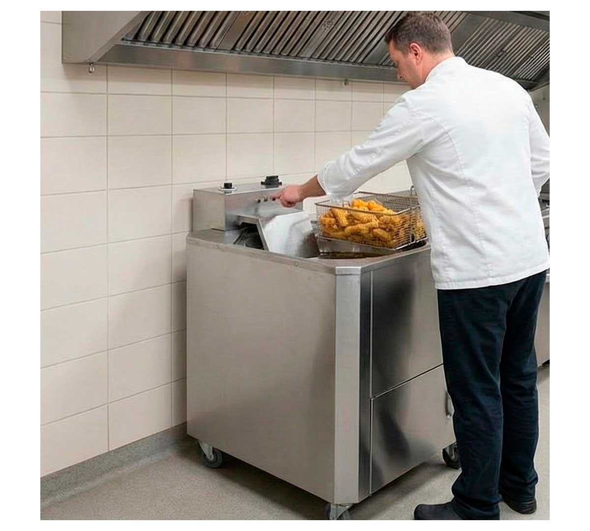 Freidora profesional eléctrica diseñada para grandes producciones. Apta para su uso en exterior e interior. Dispone de ruedas para facilitar su traslado. Con termostato analógico regulable de 0 a 250 ºC. La resistencia es extraible.