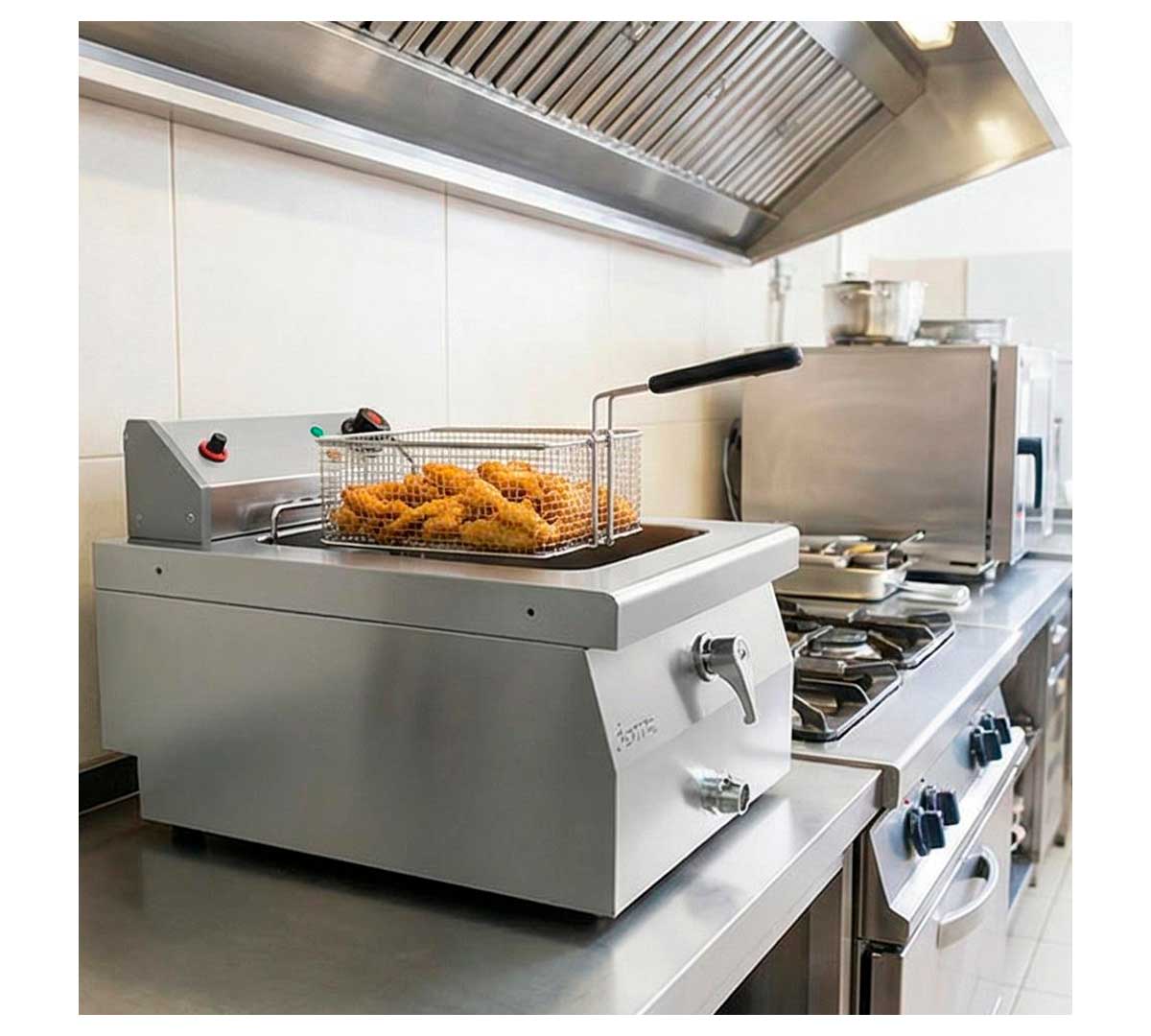 Este equipo de fritura es ideal para la preparación de alimentos fritos en cocinas profesionales, permitiendo trabajar con grandes volúmenes de producto y garantizando resultados homogéneos. Es especialmente adecuado para la elaboración de patatas fritas, croquetas, empanadillas, calamares y otros productos que requieran una fritura rápida y controlada.