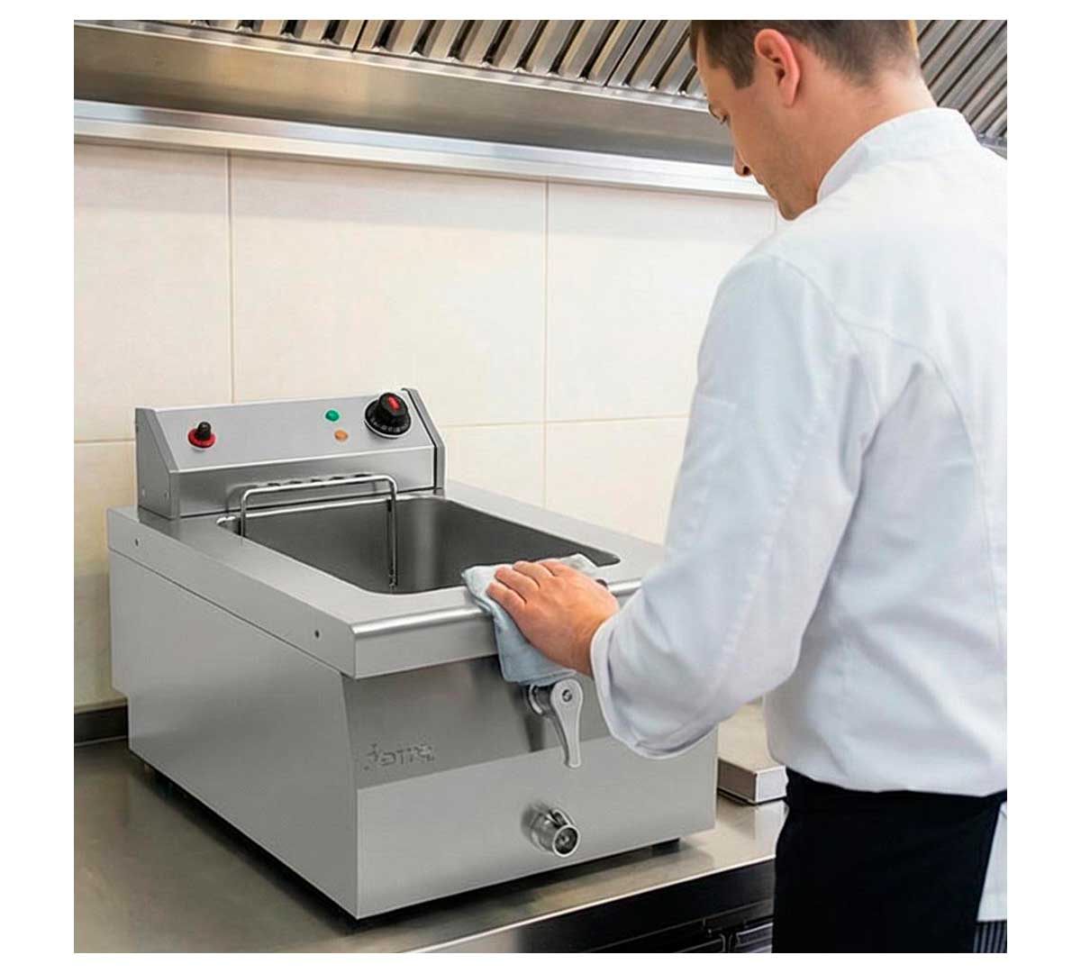 La cuba de 8 litros permite manejar cantidades medias de producto ideal para restaurantes con flujo constante, evitando cambios frecuentes de aceite y optimizando el tiempo de fritura.