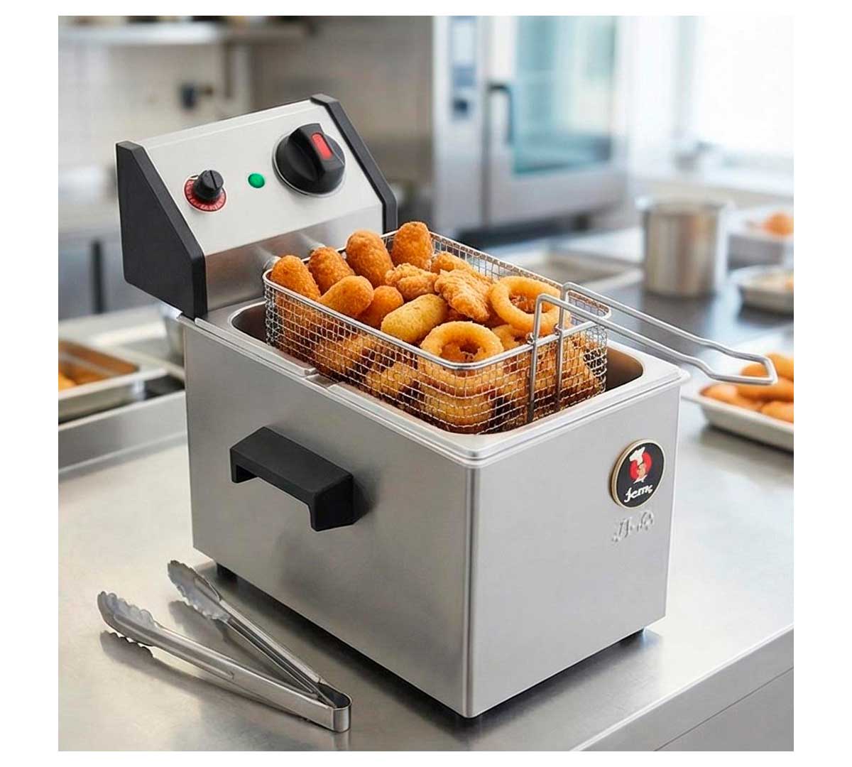 La Freidora de Sobremesa J-3 de Jemi está fabricada en acero inoxidable. Este modelo garantiza una temperatura constante para una buena fritura mediante un control termostático.