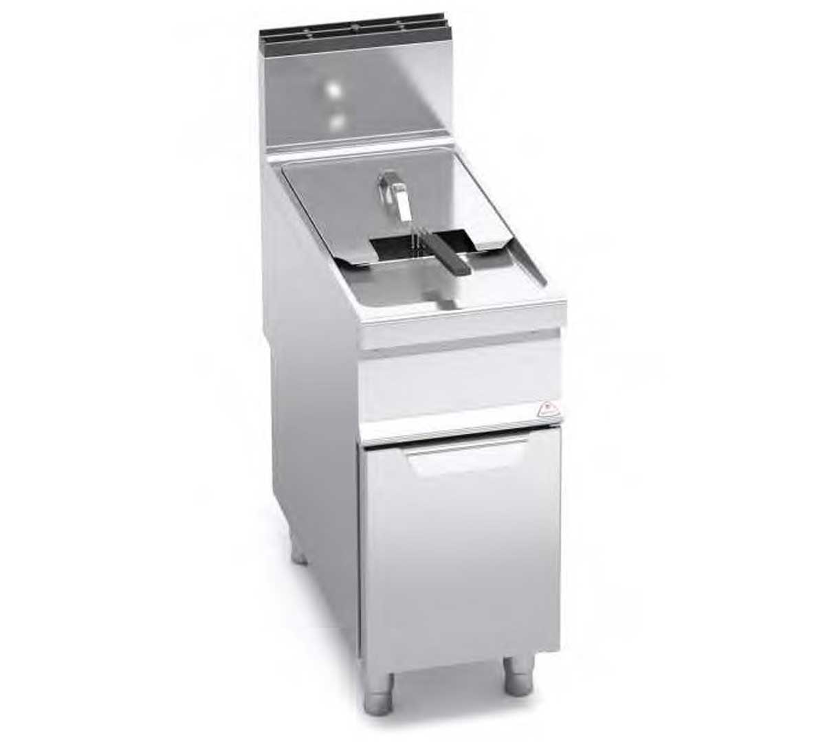 La FRG-19/20 pertenece a la Gama 900, con cuba de 20 litros, 3 quemadores tubulares de alto rendimiento y encendido piezoeléctrico. Diseñada para restaurantes, hoteles y caterings que necesitan fiabilidad y rendimiento