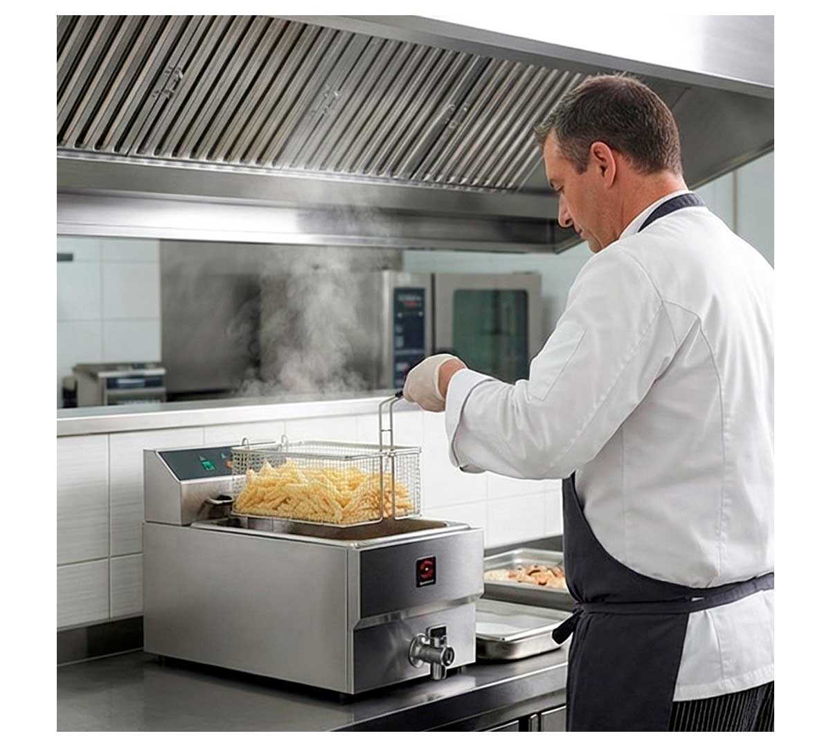 La Freidora FE destaca por tener la cuba soldada y provista de grifo de vaciado. Está disponible en tres modelos.