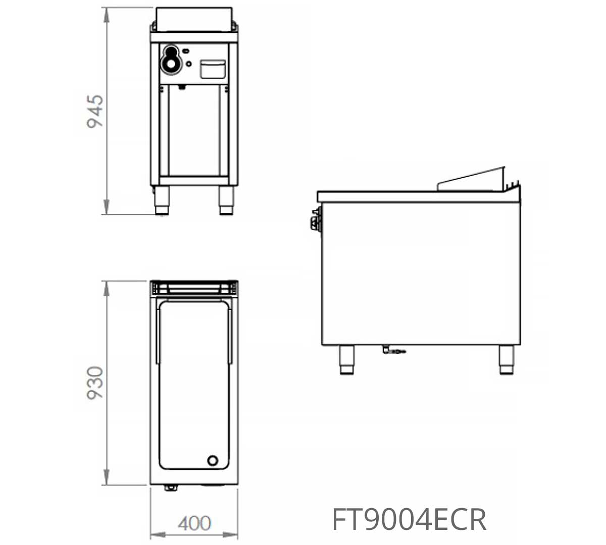 Los modelos FT9004SCR y FT9008SCR pertenecen a la Serie 900 modular, con palastro de 20 mm en cromo duro, encimera AISI 304 y fondo unificado de 900 mm para integración con otros equipos industriales.