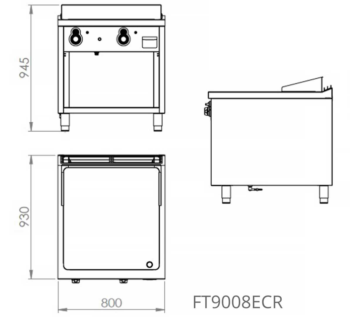Este fry-top destaca por su superficie de cromo pulido y su sólida estructura en acero inoxidable AISI 304, garantizando durabilidad, higiene y facilidad de limpieza incluso en los entornos más exigentes.