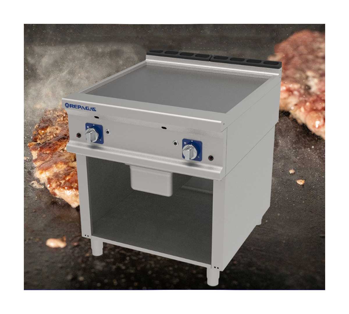 El Fry Top a Gas de Acero Professional Line 750 de Sobremesa FTG-M de Repagas es una solución de cocción robusta y versátil, diseñada para ofrecer el máximo rendimiento y adaptabilidad en cualquier cocina profesional. Este fry-top, también conocido como plancha industrial, destaca por su construcción en acero inoxidable AISI-304 con acabado scotch, lo que garantiza una durabilidad excepcional y una estética impecable en entornos exigentes.