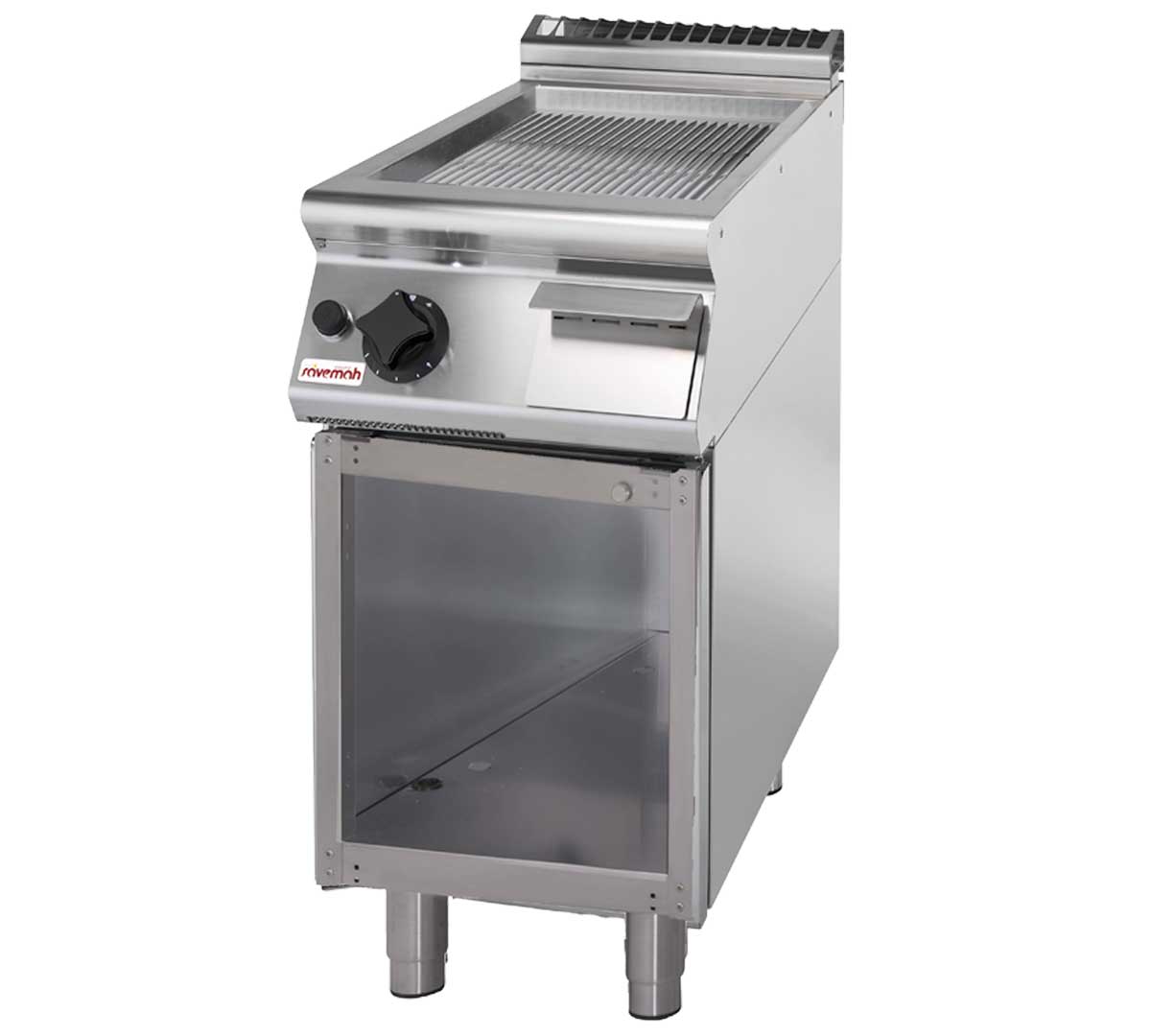 Placa ranurada de cromo duro. Con encimera en acero inoxidable AISI 304. Estructura muy robusta y fácil de limpiar. Con cajón recoge-grasas extraíble. Ofrece regulación precisa de temperatura y máxima seguridad.