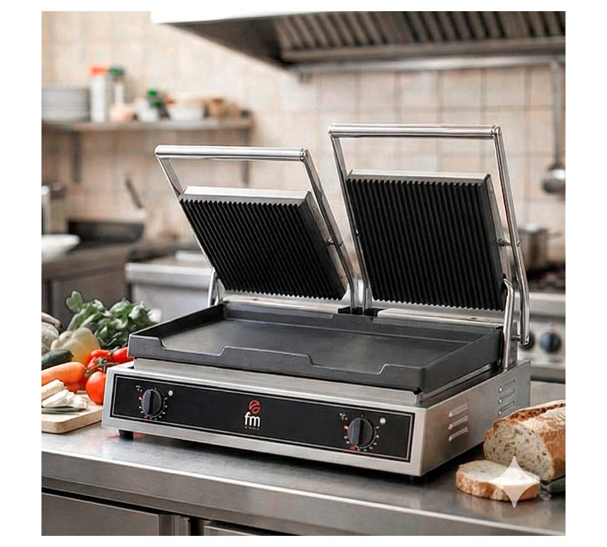 La Plancha Grill Doble GR de FM especial para bocadillos, sándwich, carne y vegetales.