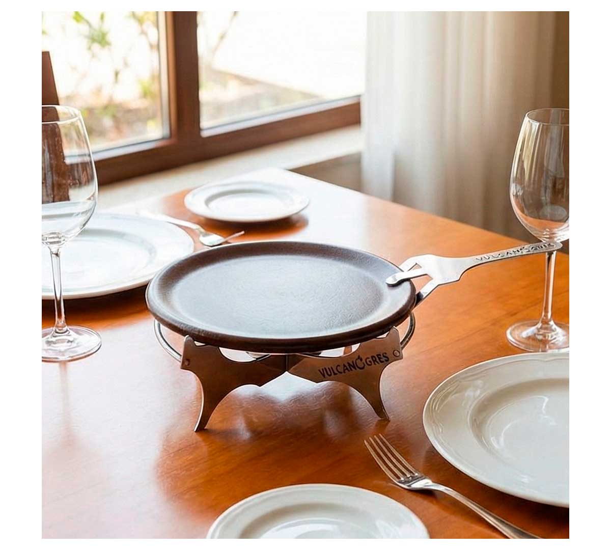 La cerámica refractaria de Vulcano Gres resiste a la llama del fuego directo y los cambios bruscos de temperatura. Mantiene la temperatura por medio de la mezcla de cuarzo, fedespato y mica contenidos en su interior.