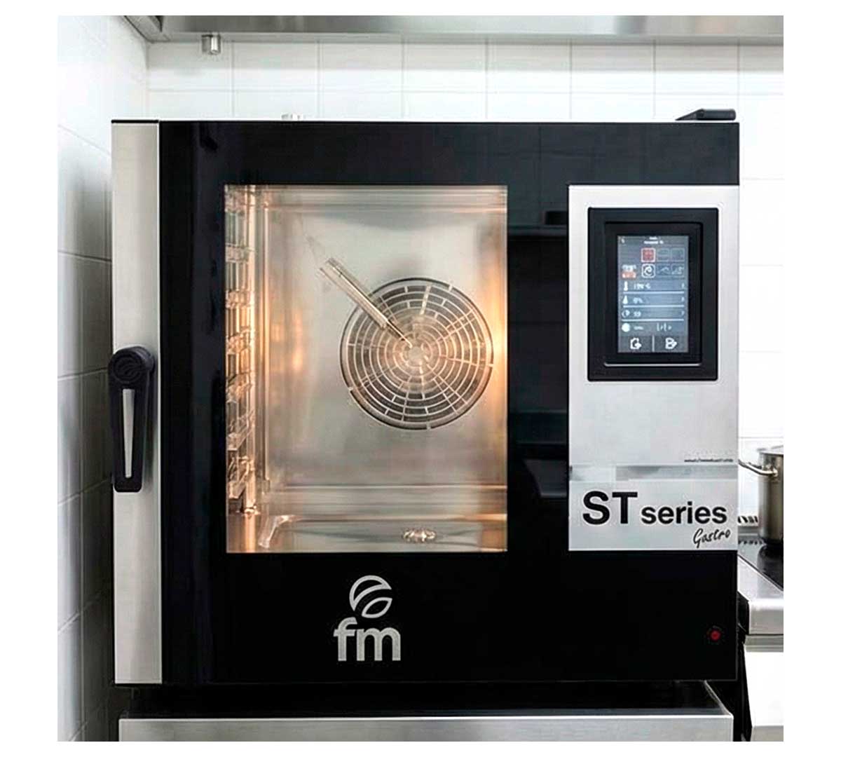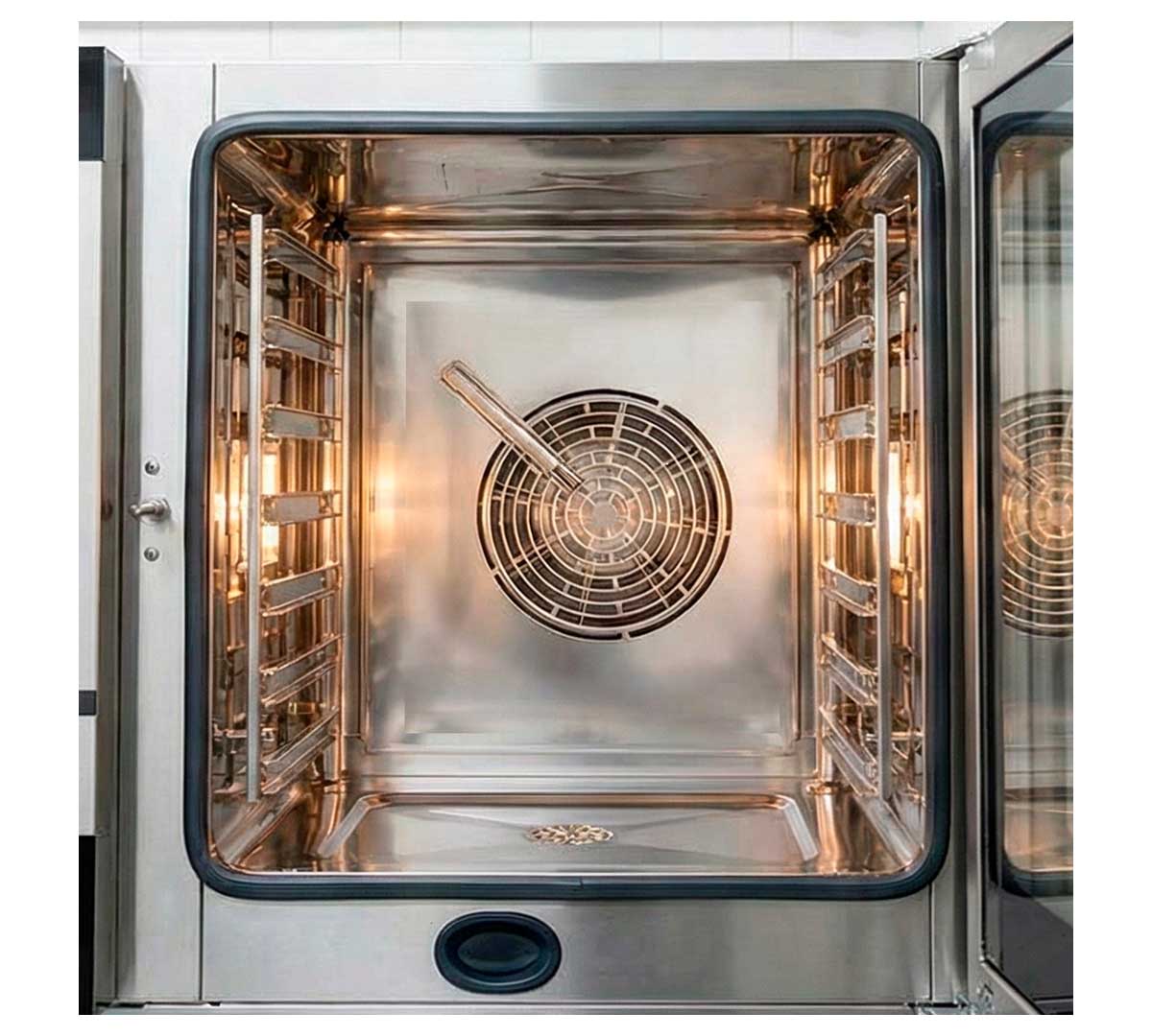 El Horno Mixto Eléctrico STG Gastro 71 V7 de FM tiene panel de control digital y una capacidad para 7 bandejas GN 1/1.