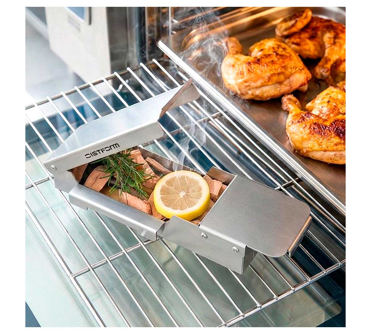 Accesorio para obtener un aroma y sabor ahumado en los alimentos horneados de manera sencilla y efectiva.