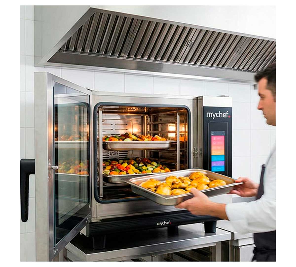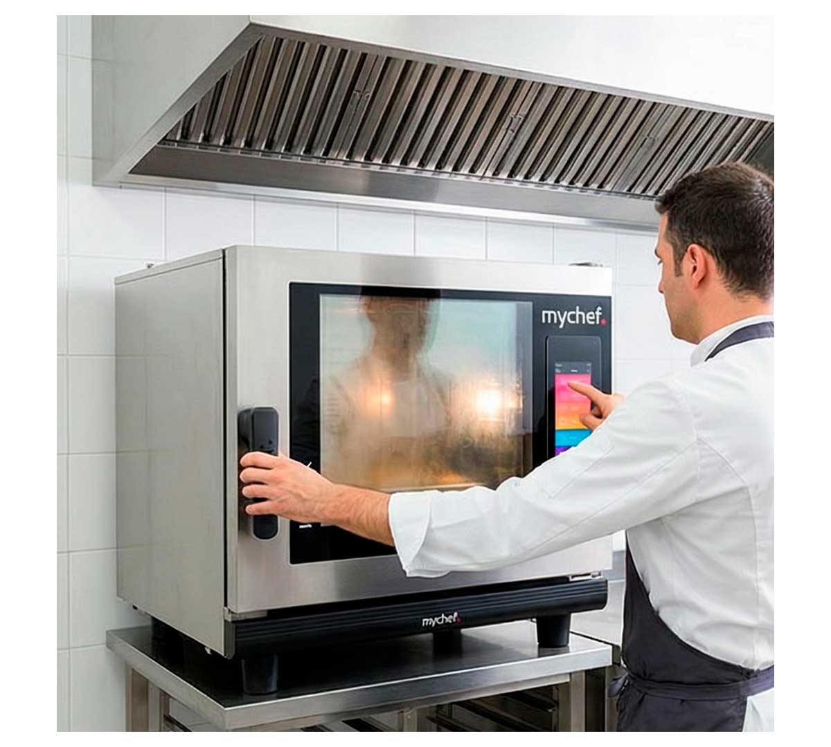El Horno Mixto iCook 6 GN 1/1 de Mychef es un horno profesional recomendado especialmente para hoteles, restaurantes, catering, supermercados y colectividades.