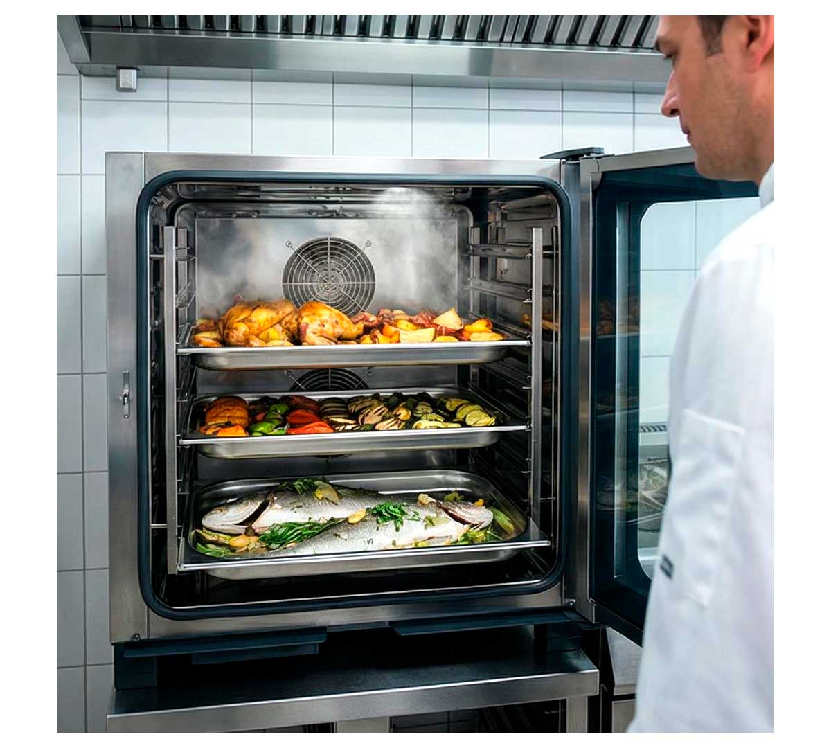 Este horno profesional puede gestionar múltiples procesos de cocción gastronómicos: