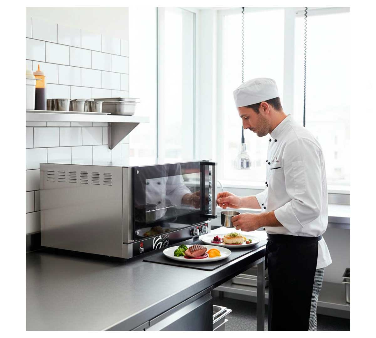 El Horno de Convección RXL 603 de FM es ideal para hornear pan precocido y bollería. Con capacidad para 3 bandejas de 60 x 40 cm o GN 1/1. Puerta con apertura lateral.