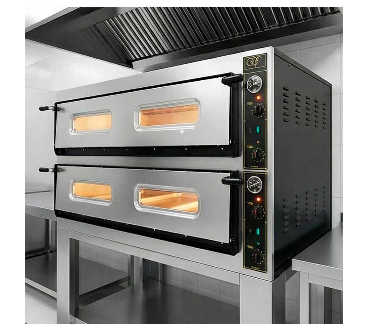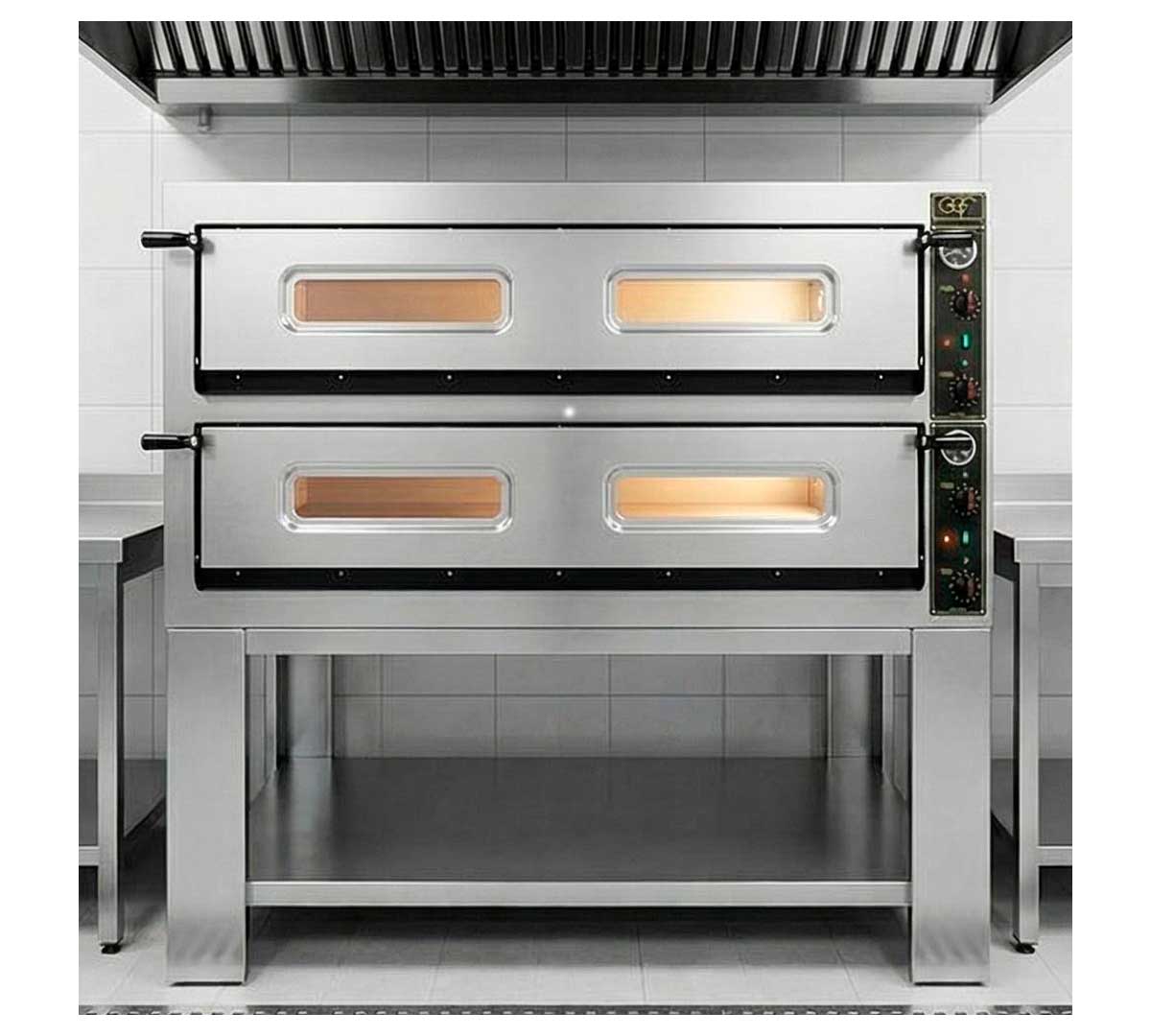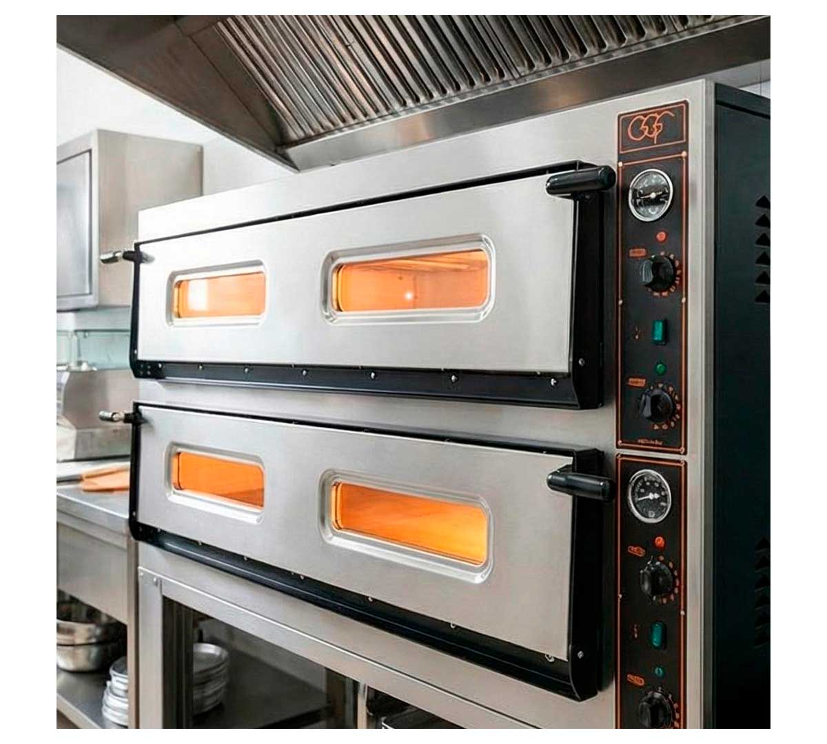 El Horno para Panadería y Pizza T33 de GGF es apto para la cocción de pan y pizza gracias a su altura interna de las cámaras de 18 cm. Tiene capacidad para 6 bandejas con medidas 60 x 40 cm. Con 2 cámaras de cocción.