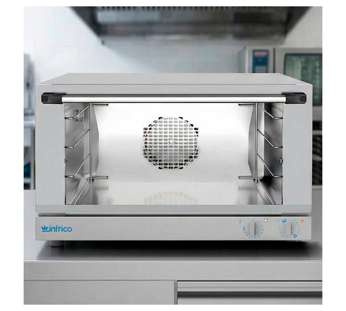 El Horno de Convección HE603 de Infrico está especialmente diseñado para pastelería o panadería. Está construido interior y exteriormente en acero inoxidable.