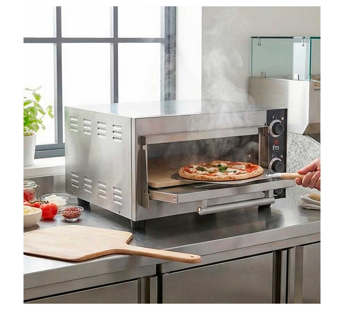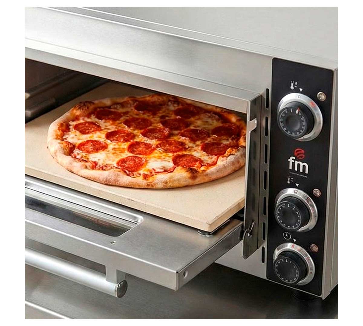 El Horno de Pizza STZ -133 de FM tiene 1 cámara. La superficie de cocción es de material refractario de alta calidad. Con capacidad para 1 pizza con un diámetro de 35 cm.