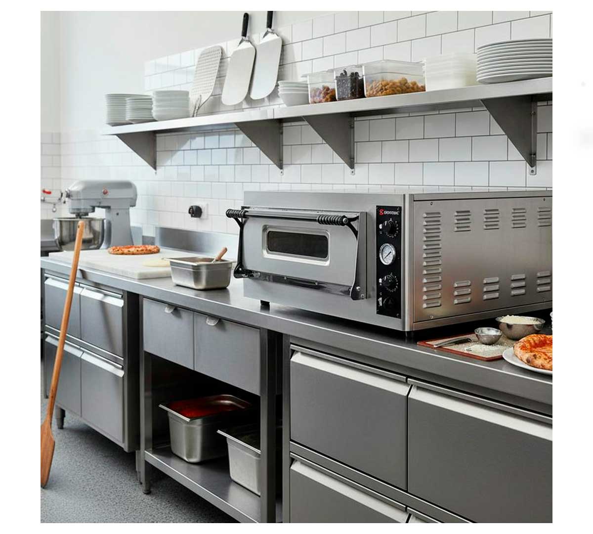 El Horno para Pizzas PO Transversal de Sammic tiene una cámara de cocción fabricada en acero inoxidable con base de piedra refractaria. Es un horno robusto y fiable de uso intuitivo. Su temperatura máxima es de 500 ºC. Con resistencias en la parte superior e inferior.