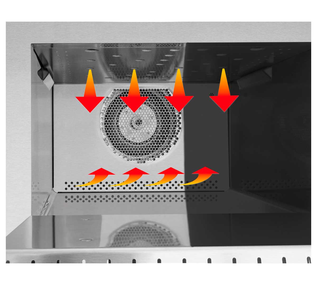 La función combinada de microondas (1.500 W) y aire caliente (3.000 W) permite una cocción rápida y eficiente, reduciendo tiempos de proceso sin sacrificar calidad ni sabor.