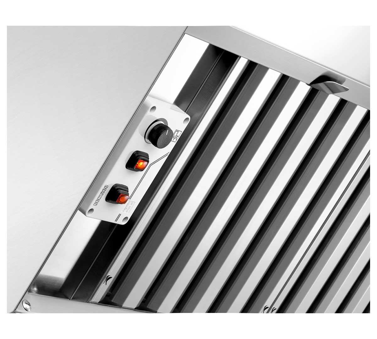 Esta campana condensadora, también conocida como sistema de extracción de vapores, ha sido diseñada específicamente para integrarse en la parte superior de los hornos Silversteam2, permitiendo un control óptimo del ambiente sin necesidad de un sistema de extracción externo.