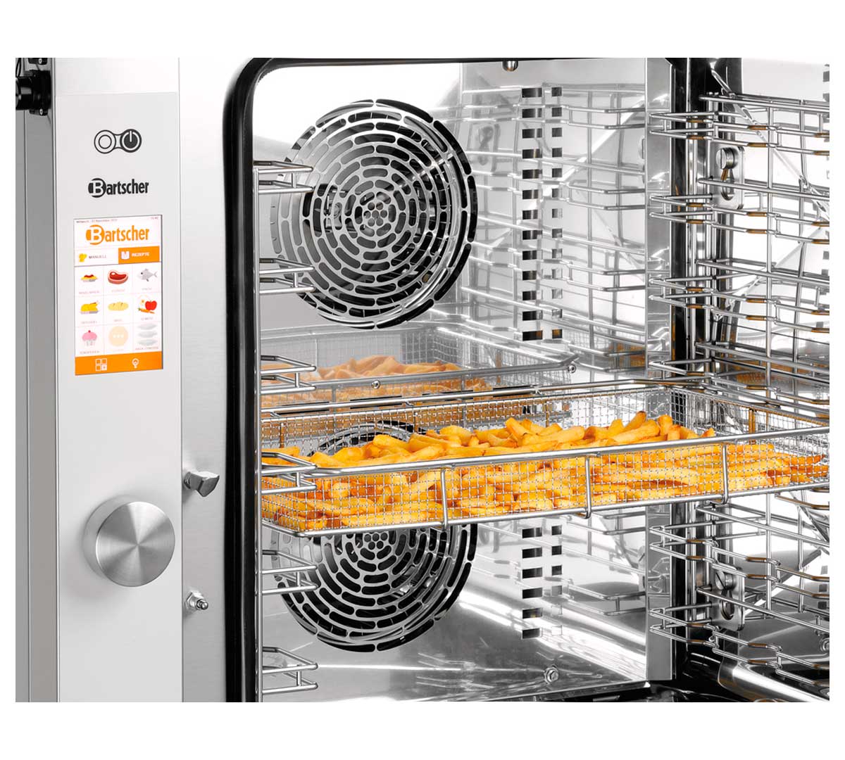 La cesta de cocción 110 permite obtener acabados crujientes y homogéneos directamente en el horno combinado, reduciendo el uso de aceite y eliminando la necesidad de equipos adicionales. Una solución práctica, saludable y rentable para cocinas profesionales que buscan eficiencia y versatilidad.