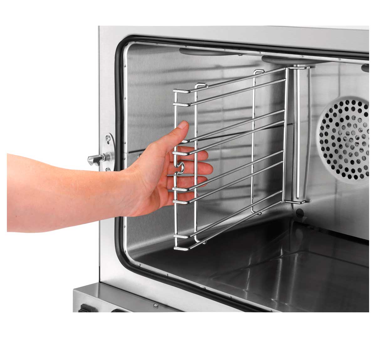 Este horno de convección es ideal para preparar carnes, pescados, verduras, pan, pasteles, tartas, gratinados y para calentar o descongelar productos ultracongelados. Permite trabajar con diferentes tipos de elaboraciones simultáneamente, sin transferencia de aromas, y es especialmente adecuado para operaciones que requieran acabados crujientes o dorados gracias a la función grill.
