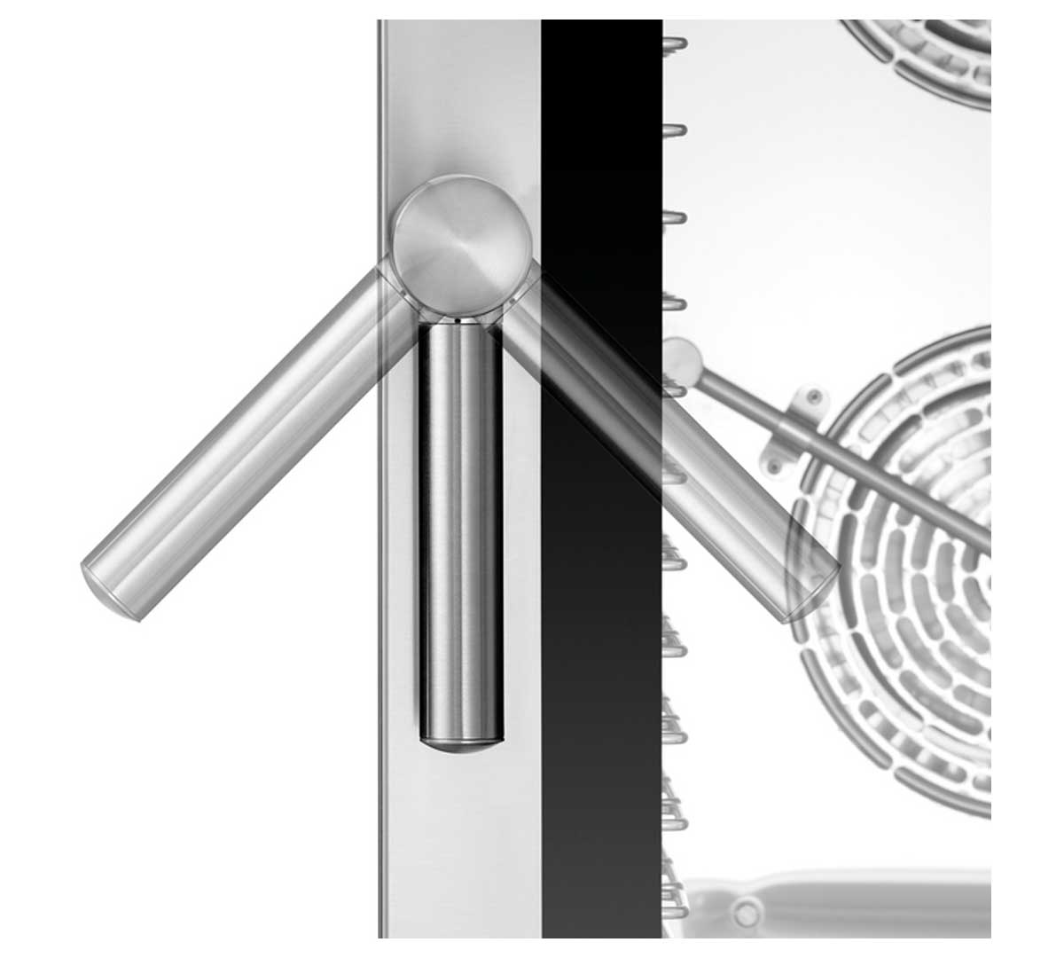 El horno permite regular digitalmente la humedad en modo mixto con un rango de porcentaje ajustable, y la válvula de extracción de vapor es manualmente operable para controlar la evaporación.