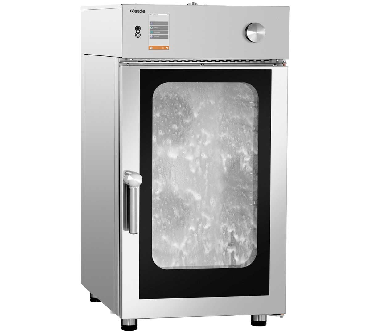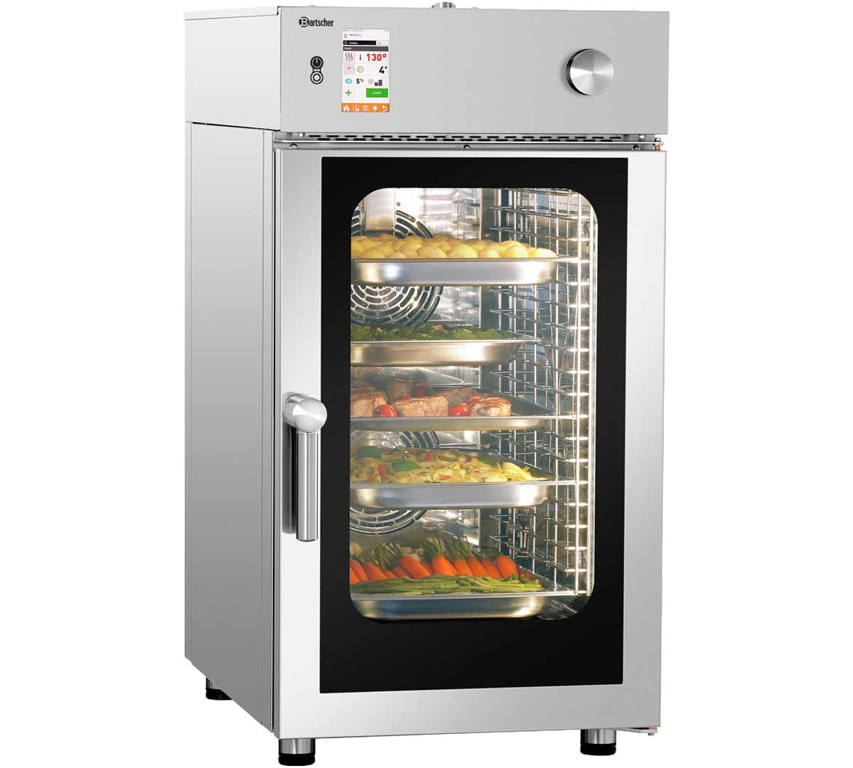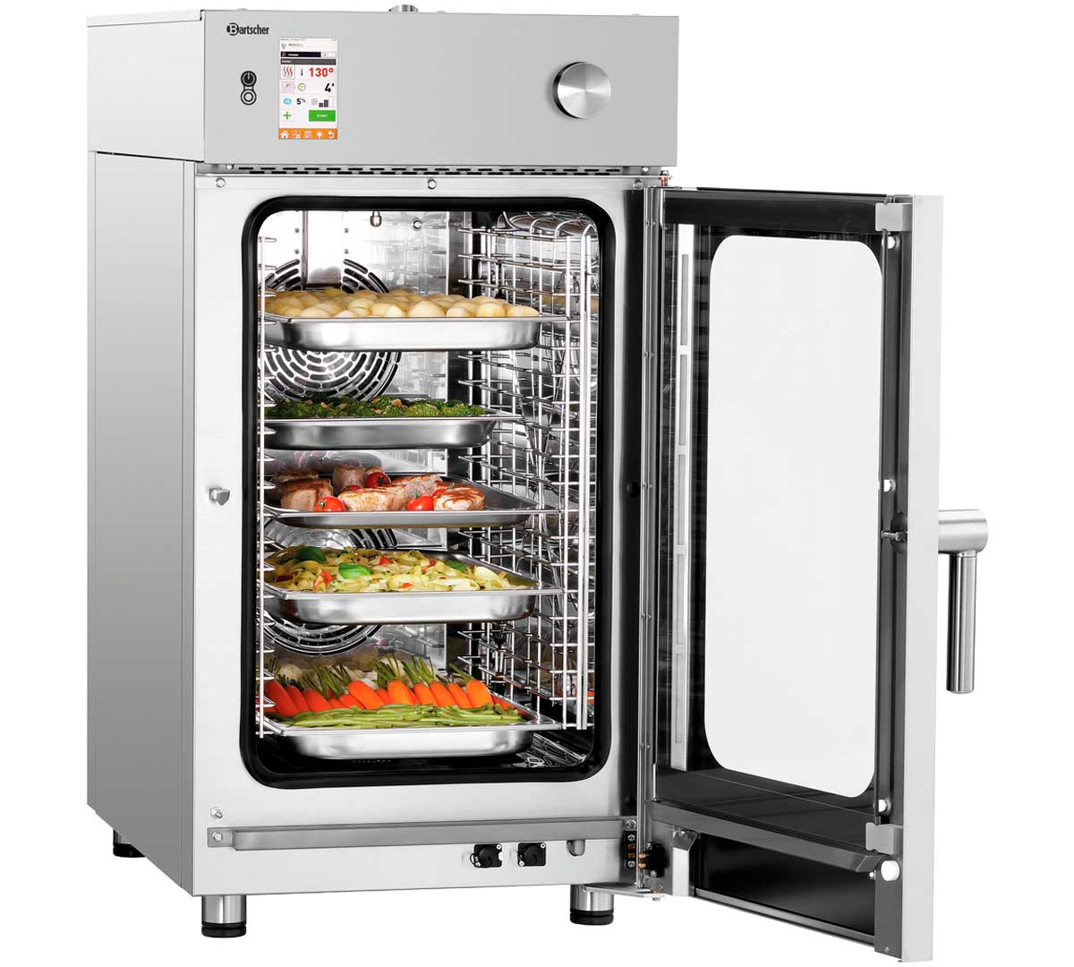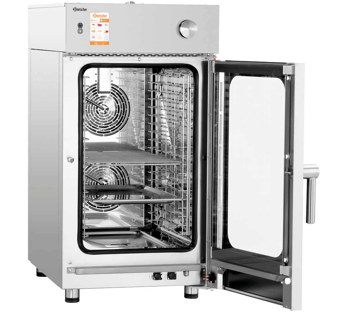 El Horno Convección Silversteam K 10110DRS Bartscher es un horno mixto digital compacto GN 1/1 con sistema de limpieza automática para Hostelería profesional.