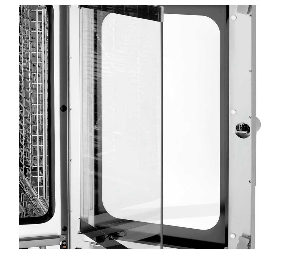 Horno mixto eléctrico profesional compacto con control digital. Sistema de convección y vapor por inyección directa. Tiene capacidad para 10 bandejas GN 1/1. Puede alcanzar temperaturas hasta 300 °C. Incorpora sistema automático de limpieza. Ideal para cocinas profesionales con espacio reducido y alta exigencia productiva.