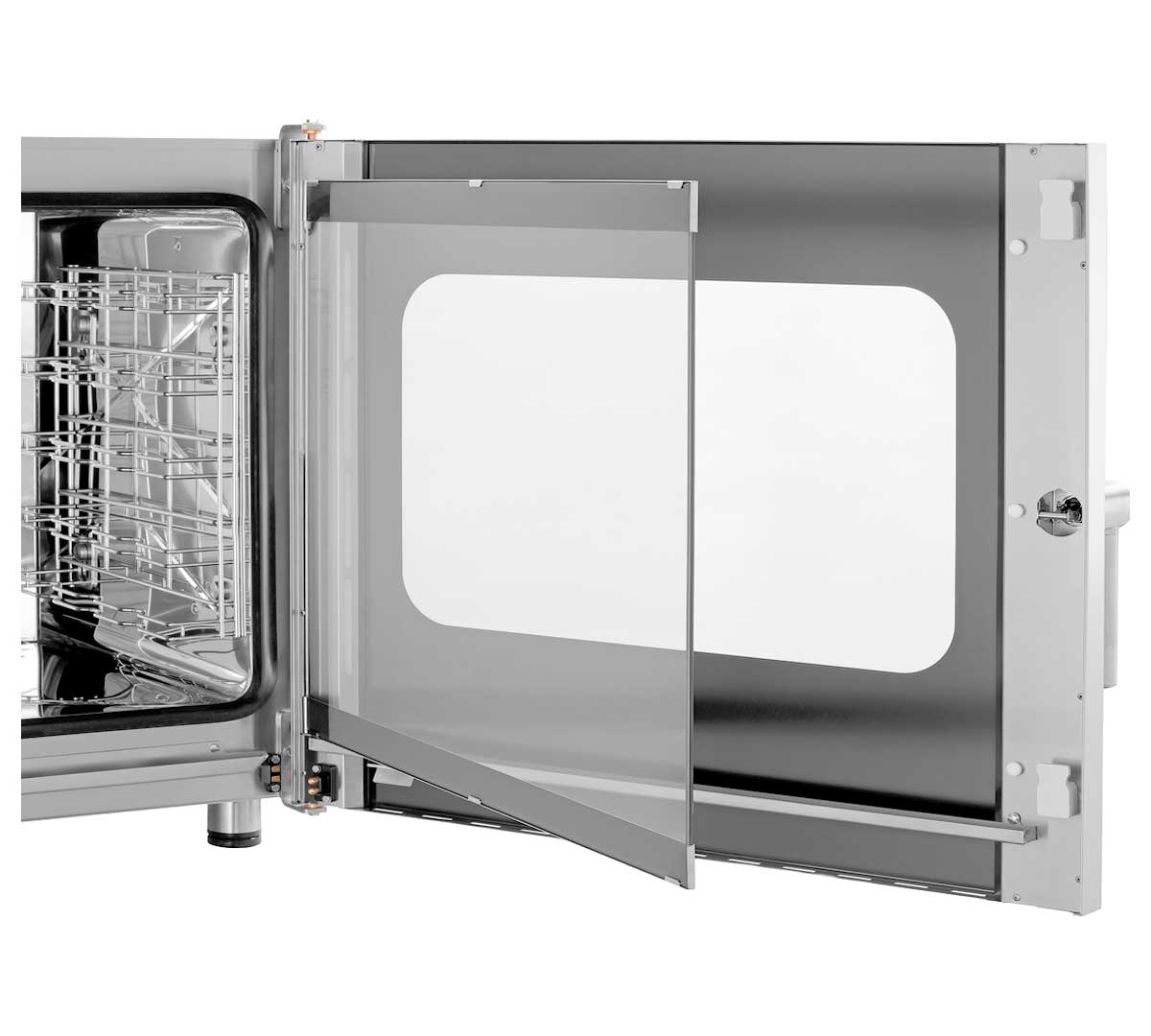 Este horno mixto es la elección perfecta para cocinas que requieren flexibilidad y precisión, permitiendo la preparación de asados, pescados, verduras, repostería, panadería y todo tipo de elaboraciones que se beneficien del control exacto de temperatura y humedad. Su función Rack Control resulta especialmente útil en servicios con alta rotación y variedad de platos, optimizando los tiempos y la calidad de cada preparación.