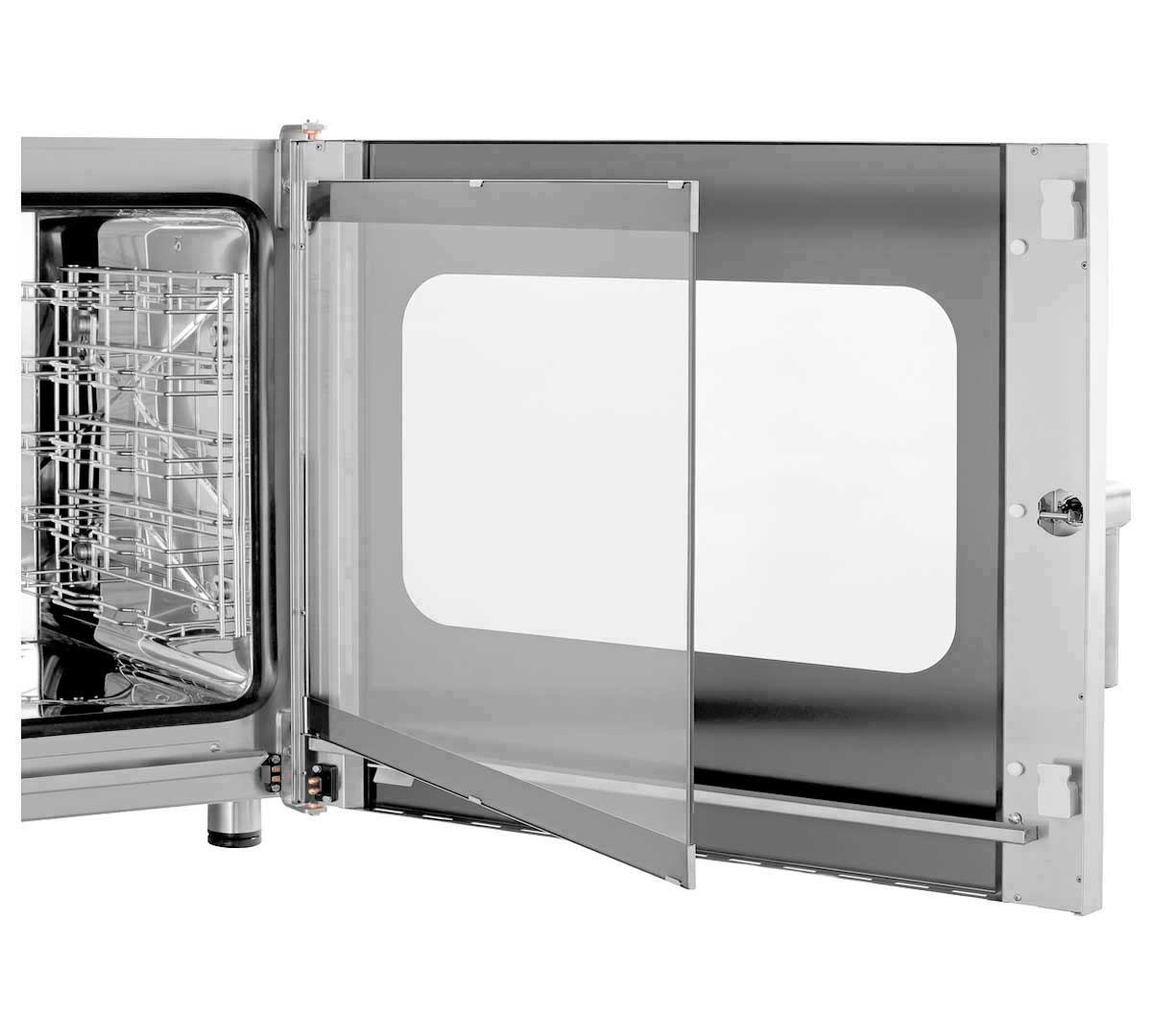 La puerta del Silversteam2 5110DRS dispone de doble acristalamiento. Esto reduce significativamente la pérdida de calor durante la cocción, mejora la eficiencia energética y ayuda a mantener una temperatura estable en el interior.