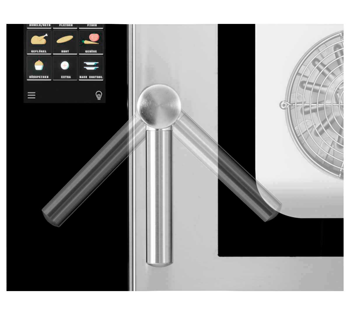 La función Rack Control permite seleccionar un programa de cocción distinto para cada una de las 5 bandejas del horno de forma independiente. Esto facilita preparar diferentes platos simultáneamente, optimizando tiempos y resultados en el flujo de trabajo.
