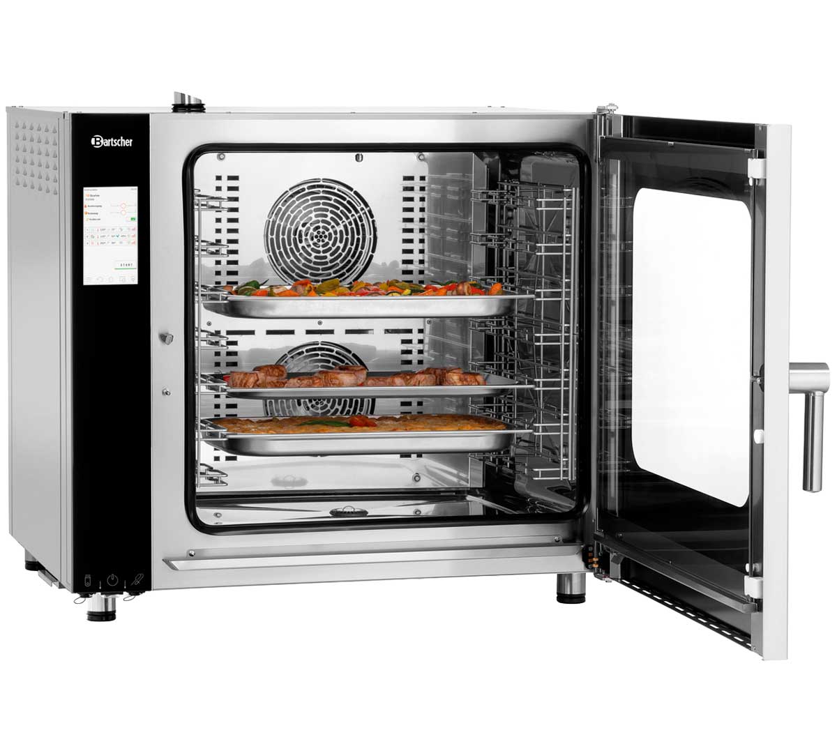 El Horno Convección Silversteam2 7110DRS Bartscher es un horno combinado profesional con limpieza integrada para restauración, hoteles y colectividades.