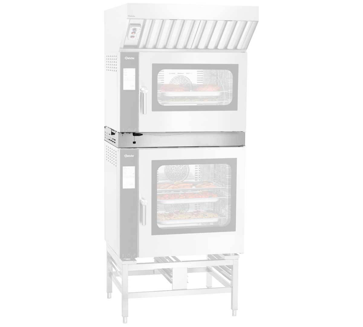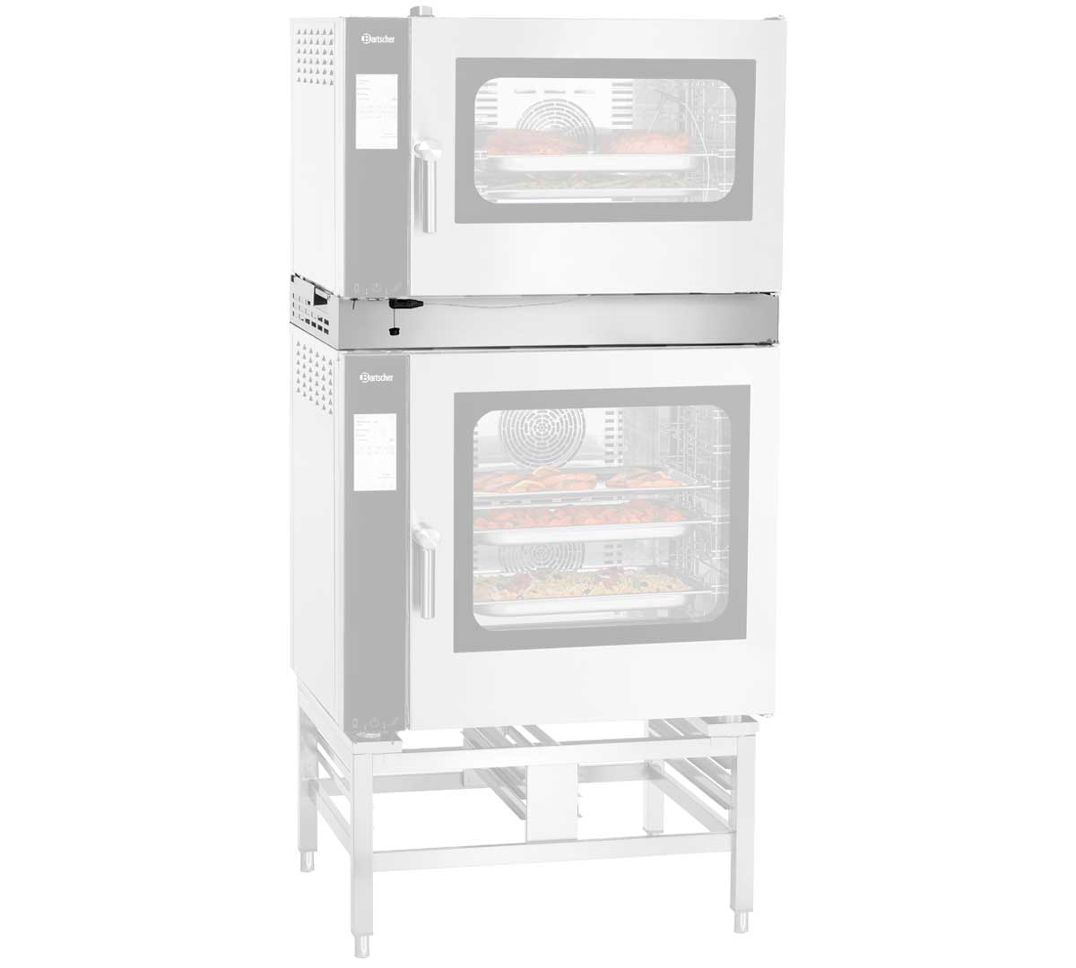Este accesorio permite apilar de forma segura y eficiente dos hornos eléctricos 1/1 GN de la serie Silversteam2, facilitando así la ampliación de la capacidad de cocción sin necesidad de ocupar más superficie en la cocina.