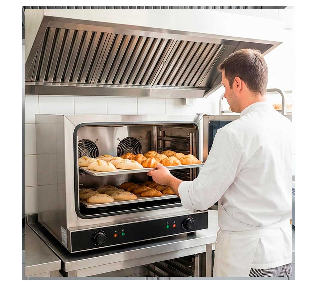 Este horno es ideal para la cocción de productos de panadería, tanto frescos como congelados, asegurando un acabado perfecto gracias a su distribución uniforme del calor.