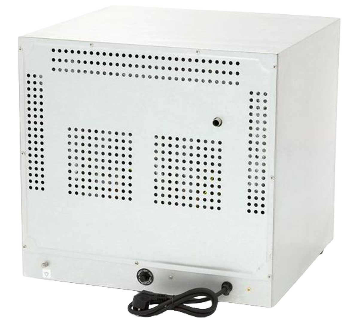 Horno de convección profesional eléctrico de 2670 W con capacidad para 4 bandejas 435 x 315 mm, doble motor de ventilación y termostato regulable hasta 300 °C. Sistema de aire caliente uniforme para panadería y restauración que requieren cocción homogénea en formato compacto de alto rendimiento.