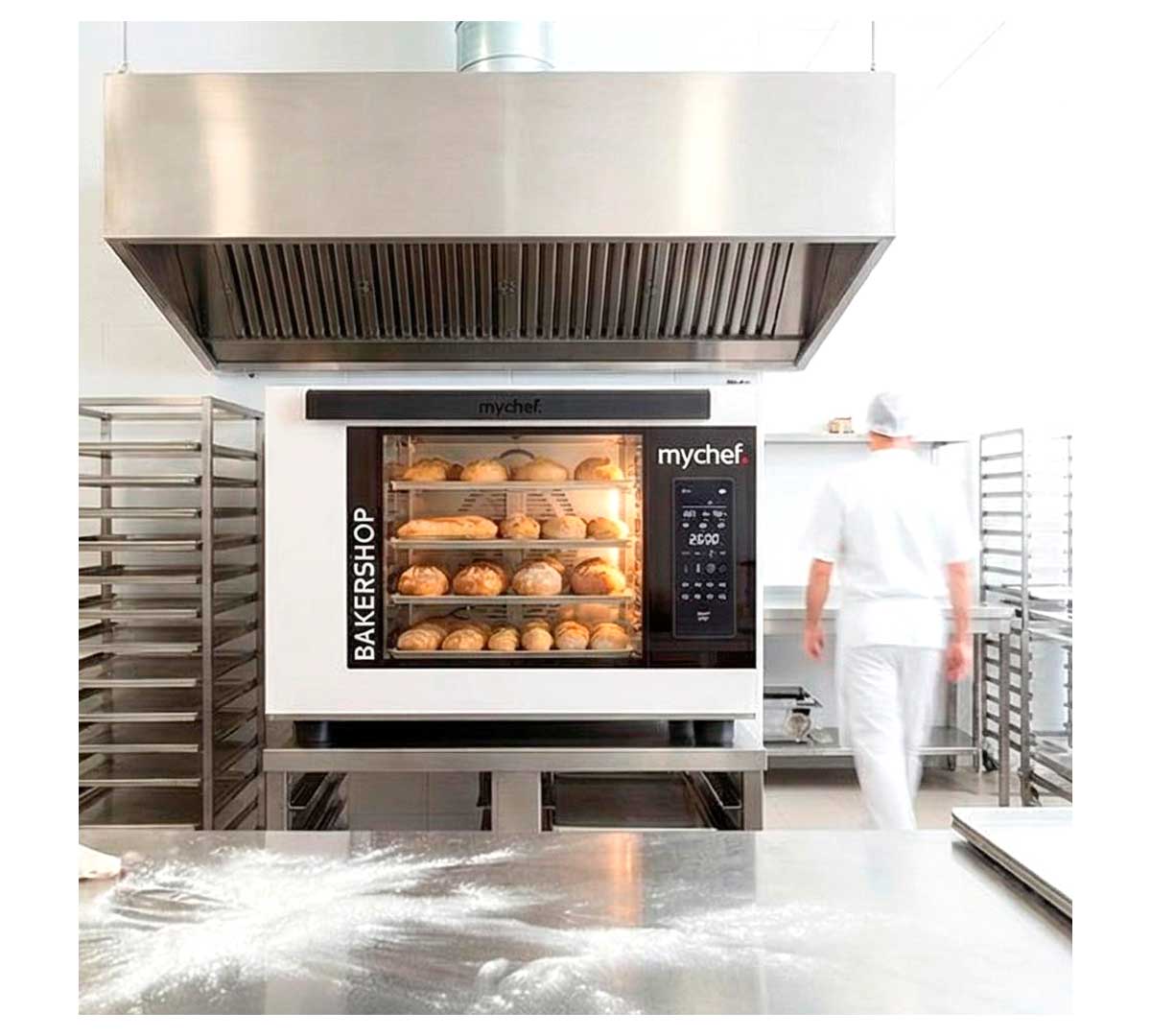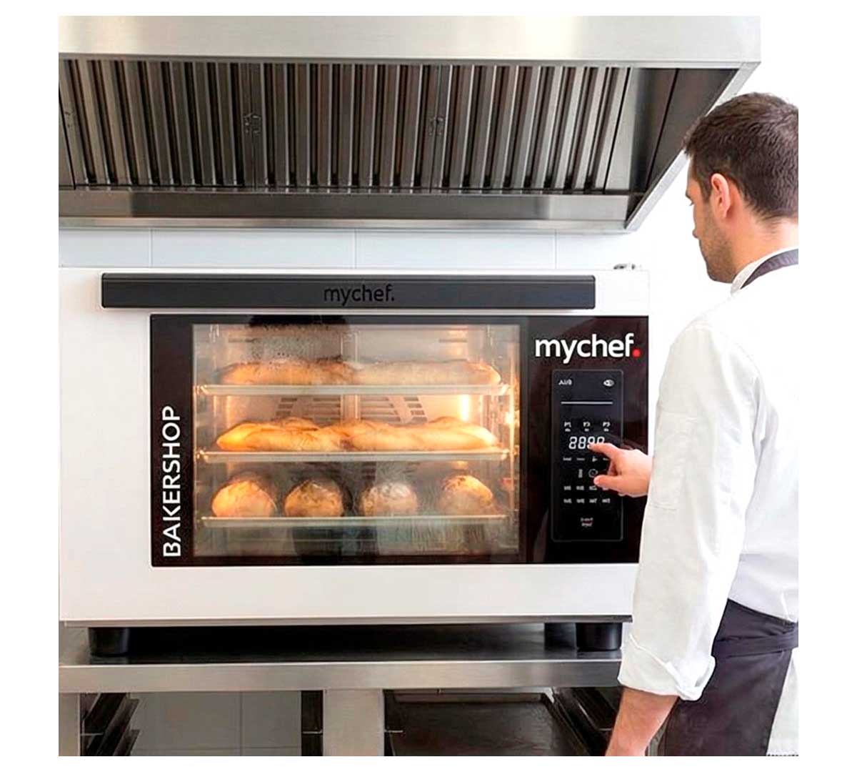 El Horno de Convección Bakershop Air 4 de Mychef es un horno profesional de la nueva gama de hornos de pastelería. Es ideal para cafeterías, bares, bakery coffees y tiendas de alimentación.