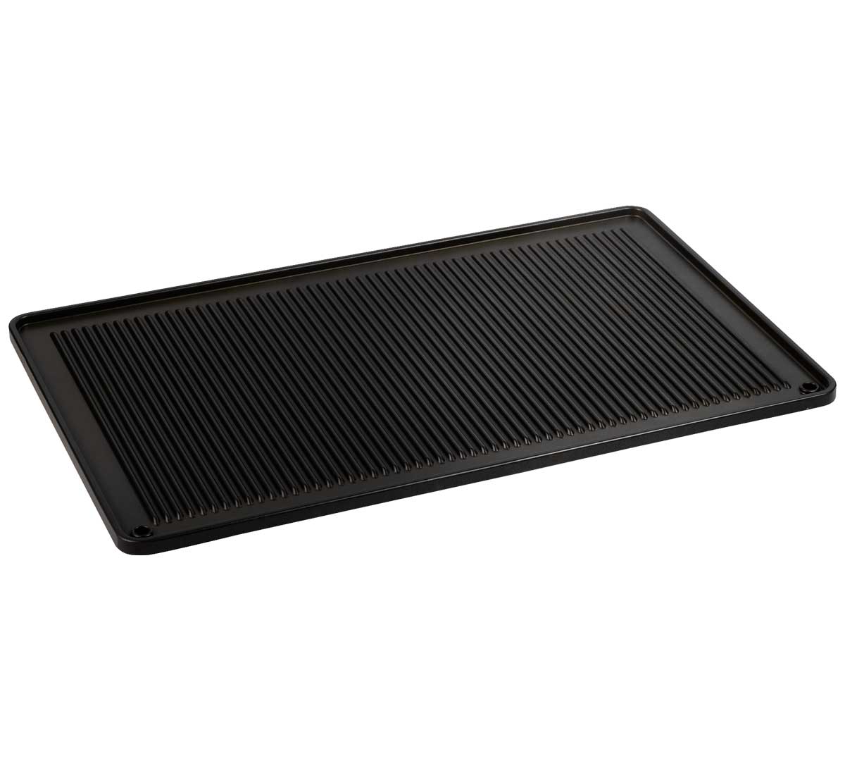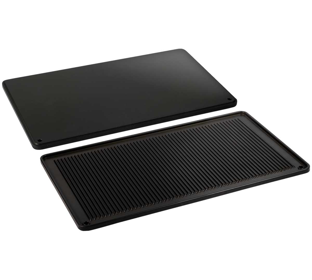 Parrilla GN 1/1 de aluminio fundido con recubrimiento antiadherente y resistencia hasta 260 ºC, diseñada para hornos de convección. Sistema de cocción uniforme con doble función grill y plano, ideal para uso intensivo en cocina profesional.