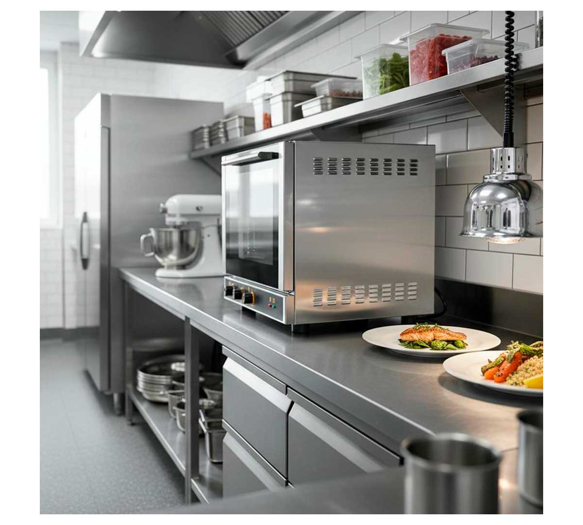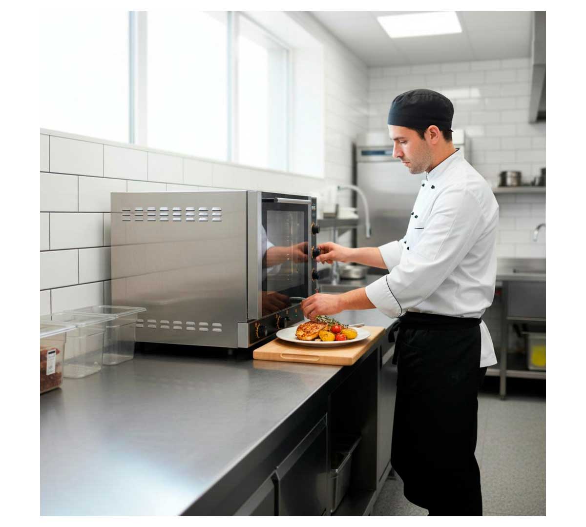 El Horno Convección Evolution Snack de Tecnoeka es un horno de convección equipado con un ventilador.