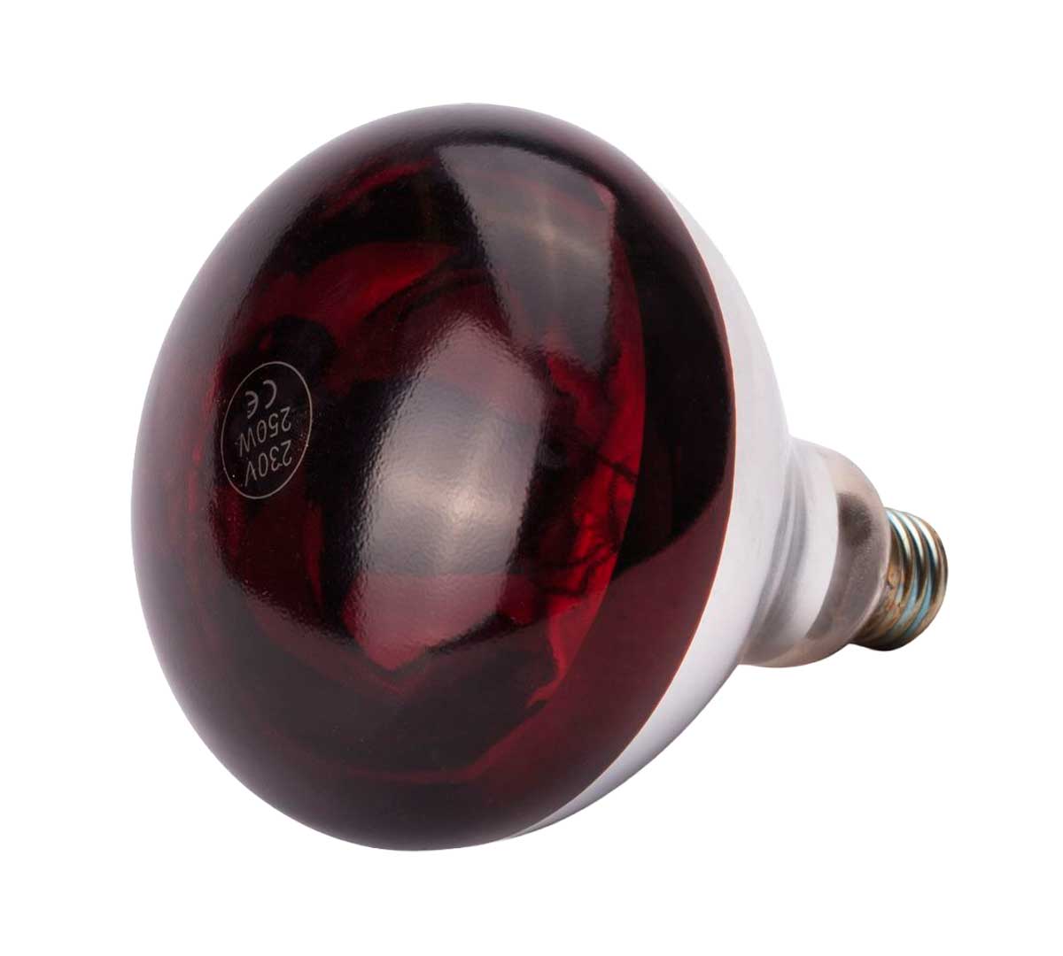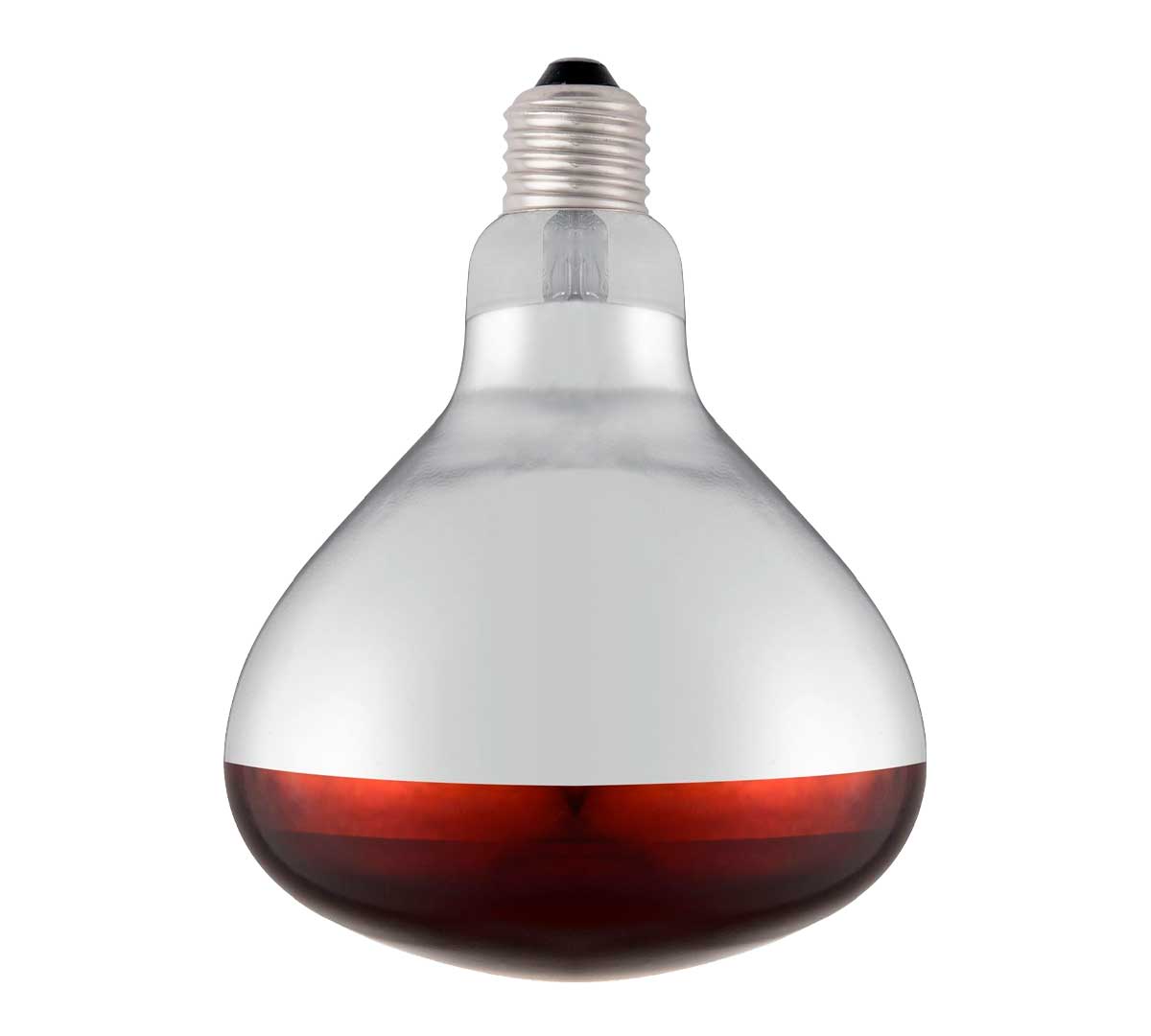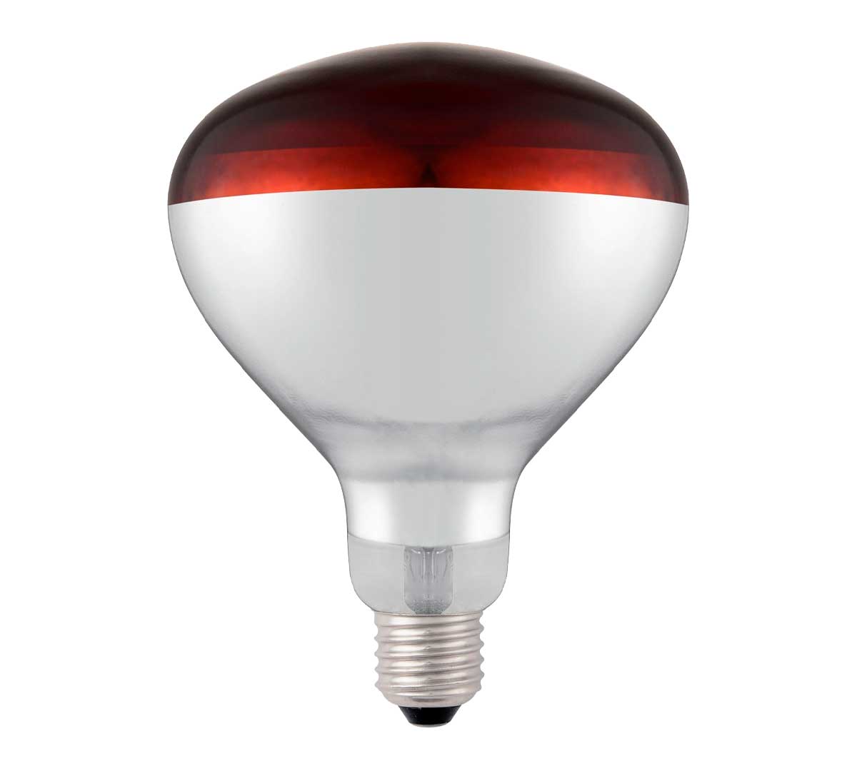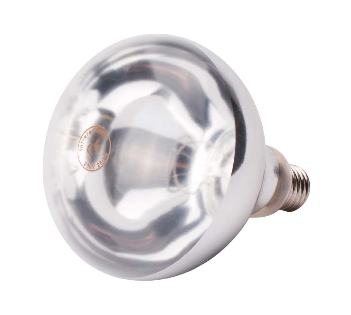 Bombilla calentadora irrompible. Tiene una potencia de 250 W. Está disponible con luz blanca o luz roja. Sus medidas son Ø 12,5 x 17 cm. Es compatible con las lámparas mantenedoras de calor de Hendi.