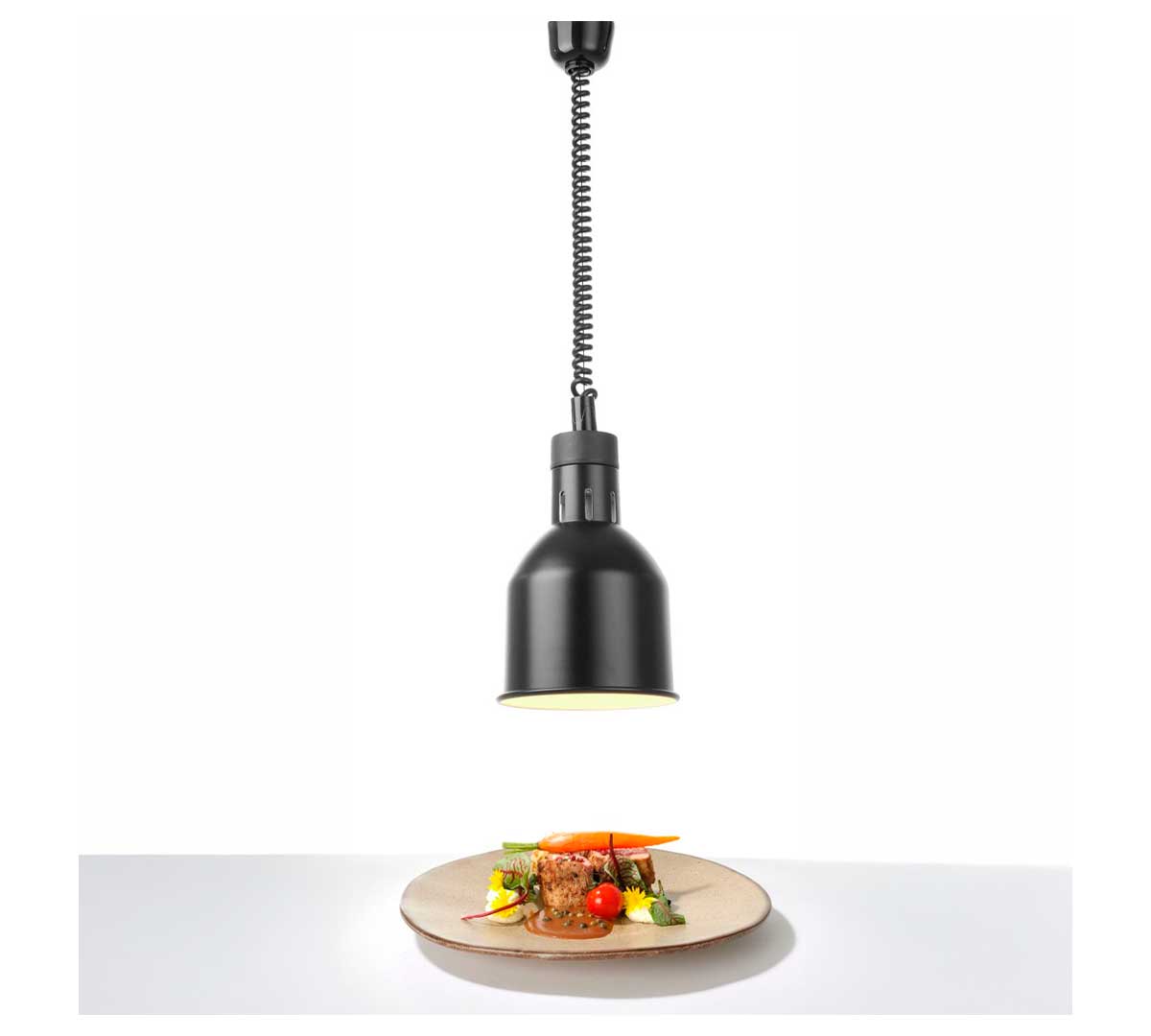 Esta lámpara de calor es perfecta para mantener la temperatura de platos preparados en líneas de pase, buffets, autoservicios, comedores y puntos de recogida. Su uso está especialmente indicado en situaciones donde es fundamental conservar la textura y temperatura de los alimentos antes de su servicio, evitando que se enfríen y asegurando una experiencia óptima para el comensal. El sistema de lámpara infrarroja proporciona un calentamiento inmediato y homogéneo, sin resecar los alimentos.